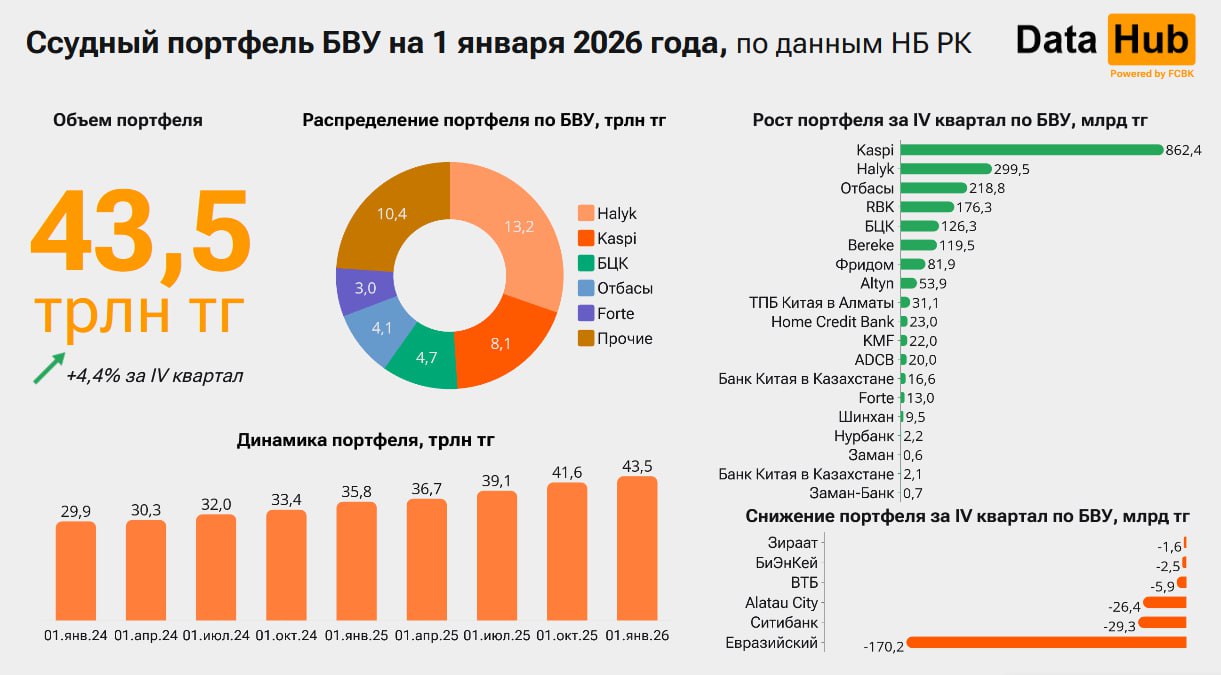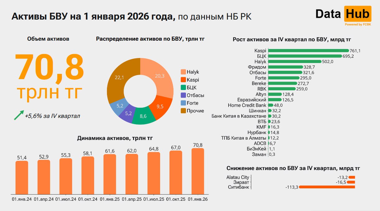 Первое кредитного бюро со ссылкой на данные Нацбанка опубликовало свежую статистику по финансовым результатам банков второго уровня. Эти сведения показывают, как сектор вошел в новый год и кто оказался в лидерах по итогам 2025-го, передает ИА «NewTimes.kz».
