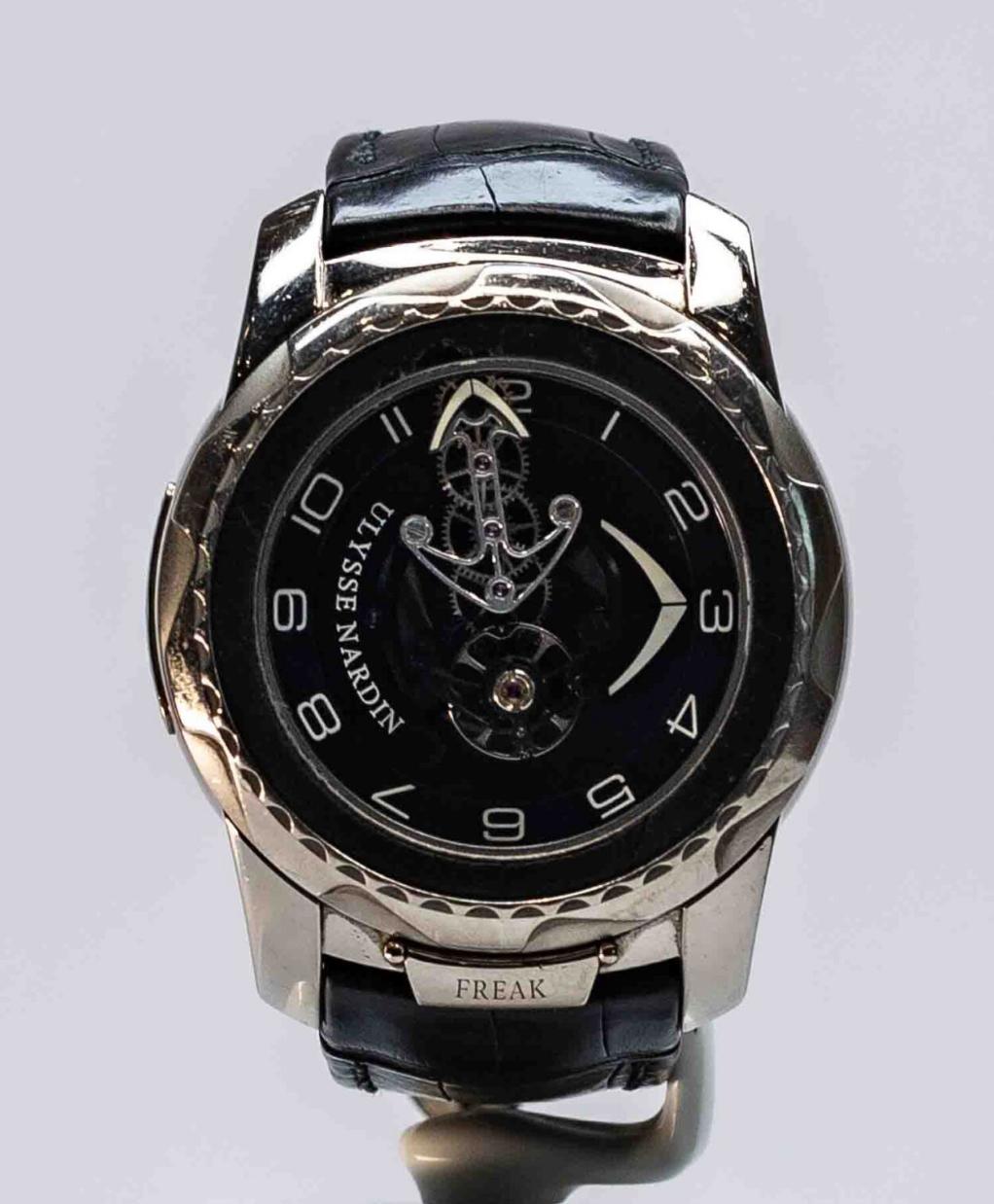 Наручные часы Ulysse Nardin Archive Freak Cruiser — 24,720 миллиона тенге. Та же марка, что и у самого дорогого лота аукциона, но, судя по цене, уровень роскоши ниже. Корпус выполнен из 18-каратного белого золота, диаметр — 45 мм, водонепроницаемость до 30 метров. Имеются царапины на корпусе.