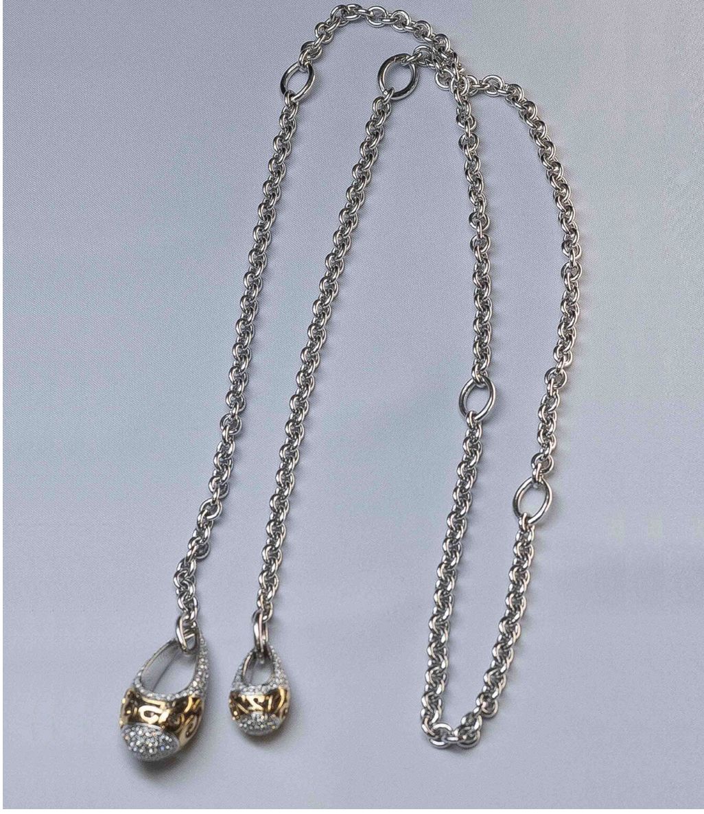 Следующий лот — цепочка с бриллиантами Van Cleef & Arpels за 46,797 миллиона тенге. На сентябрьском аукционе её цена составляла 38,6 миллиона, то есть выросла примерно на 8 миллионов. Видимо, её сочли не настолько роскошной.