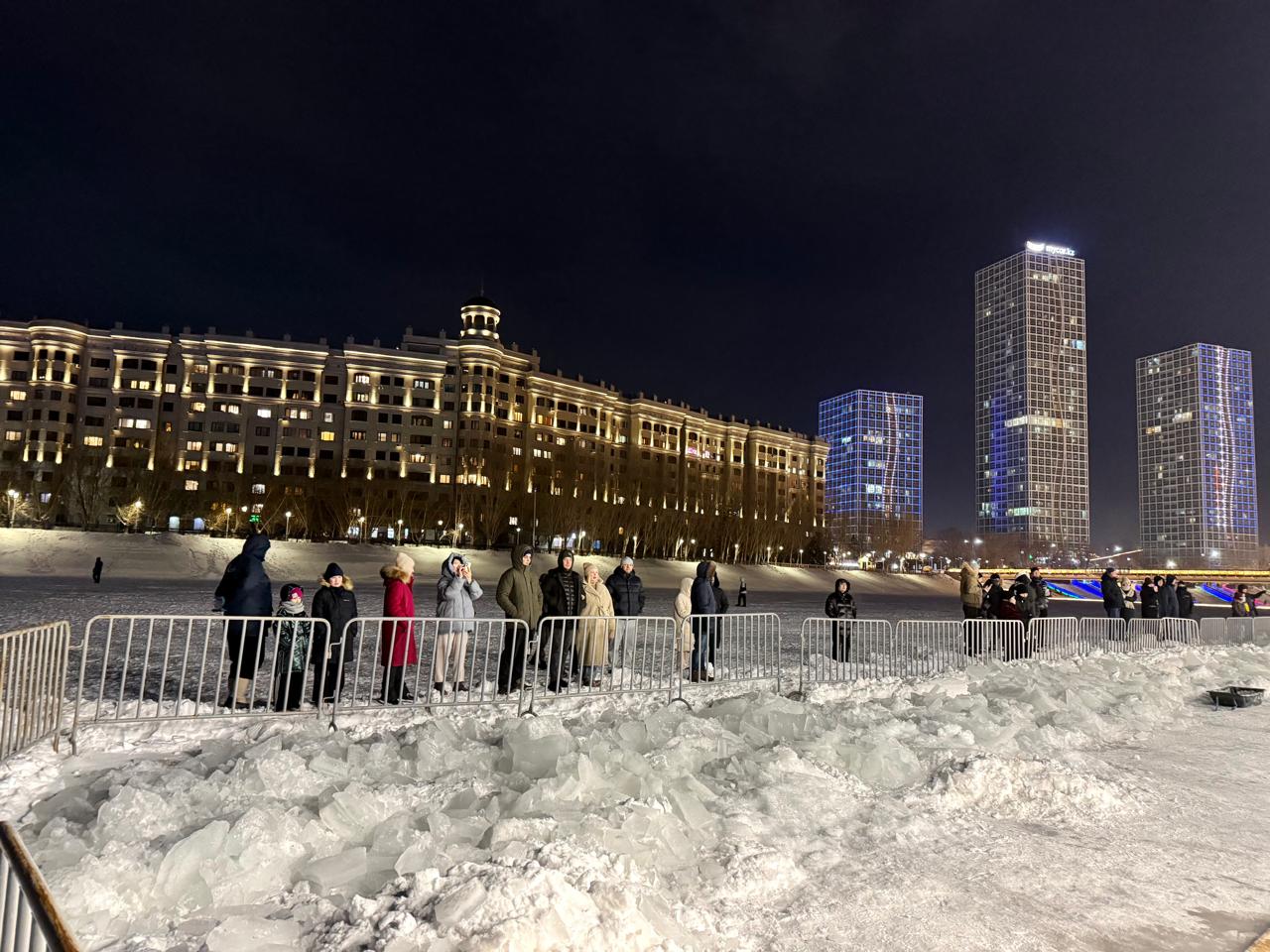 В районе набережной парка «Столичный», у центрального пляжа, сразу после завершения крестного хода и освящения купелей священнослужителями, примерно с 19:00 начали массово собираться люди. За короткое время на территории собралось множество астанчан.