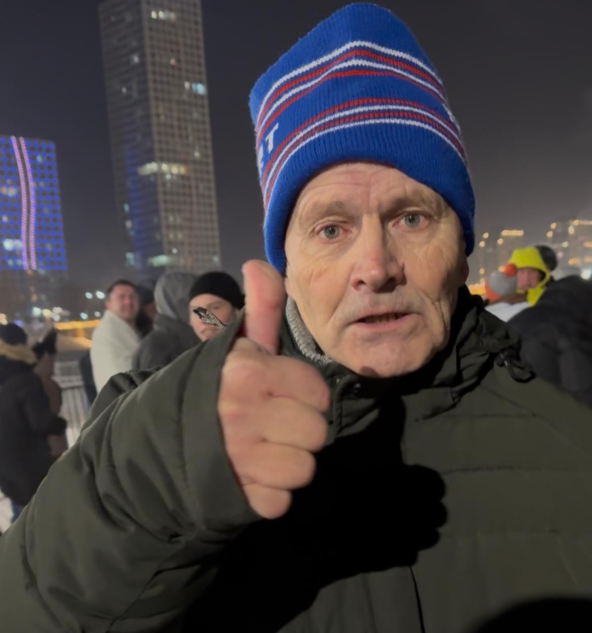 65-летний Михаил пришёл на крещенские купания вместе с внуком. По его словам, он окунается в прорубь уже шестой год подряд и признаётся, что этот ежегодный ритуал помогает ему поддерживать хорошую физическую форму даже в таком возрасте.