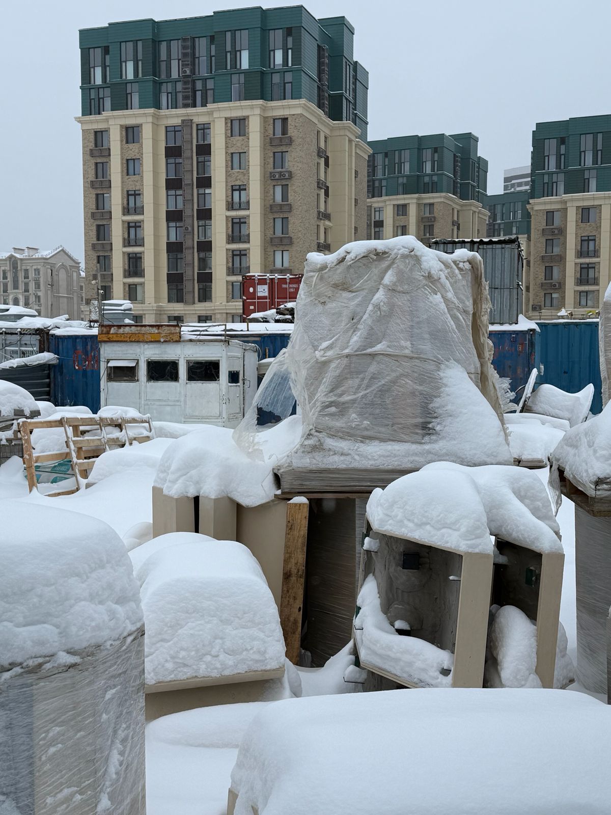 Подойдя ко входу на строительный объект, журналист обнаружил, что дверь открыта, поэтому попасть внутрь всё же удалось. На территории находился один мужчина — предположительно рабочий, который расчищал дорожку от снега.