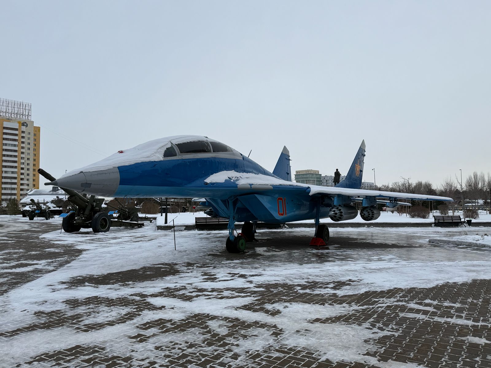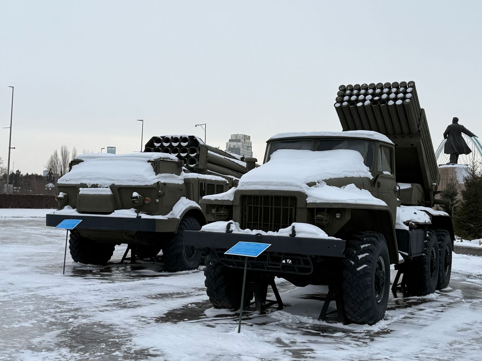 При этом из экспозиции музея убрали только восковую фигуру Нурсултана Назарбаева. Его памятник по-прежнему остаётся на месте. У входа в музей размещена масштабная композиция, символизирующая три вида Вооружённых сил Казахстана. В центре инсталляции до сих пор находится металлическая фигура Назарбаева в военной форме.