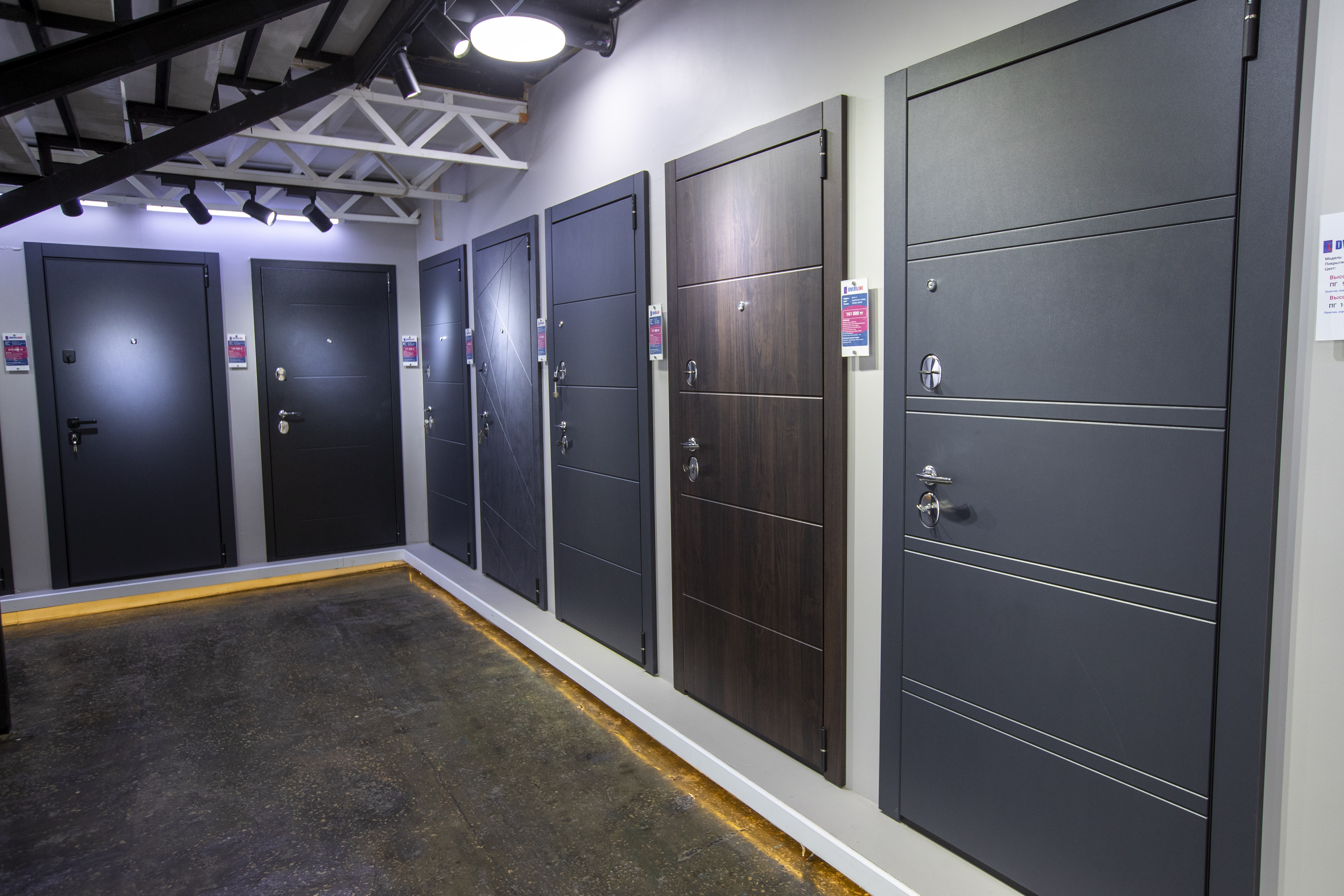 Пройдя ещё немного, мы решаем заглянуть в магазин, расположенный рядом с рынком. Здесь продают межкомнатные и входные двери, ламинат, плинтусы и фурнитуру. Управляющий Ануар работает в этом магазине уже шесть лет и, как выясняется, хорошо разбирается во всех сегментах продукции. Оказывается, это один из двух крупных шоурумов в Казахстане, где под заказ изготавливают двери практически любой сложности и высоты.