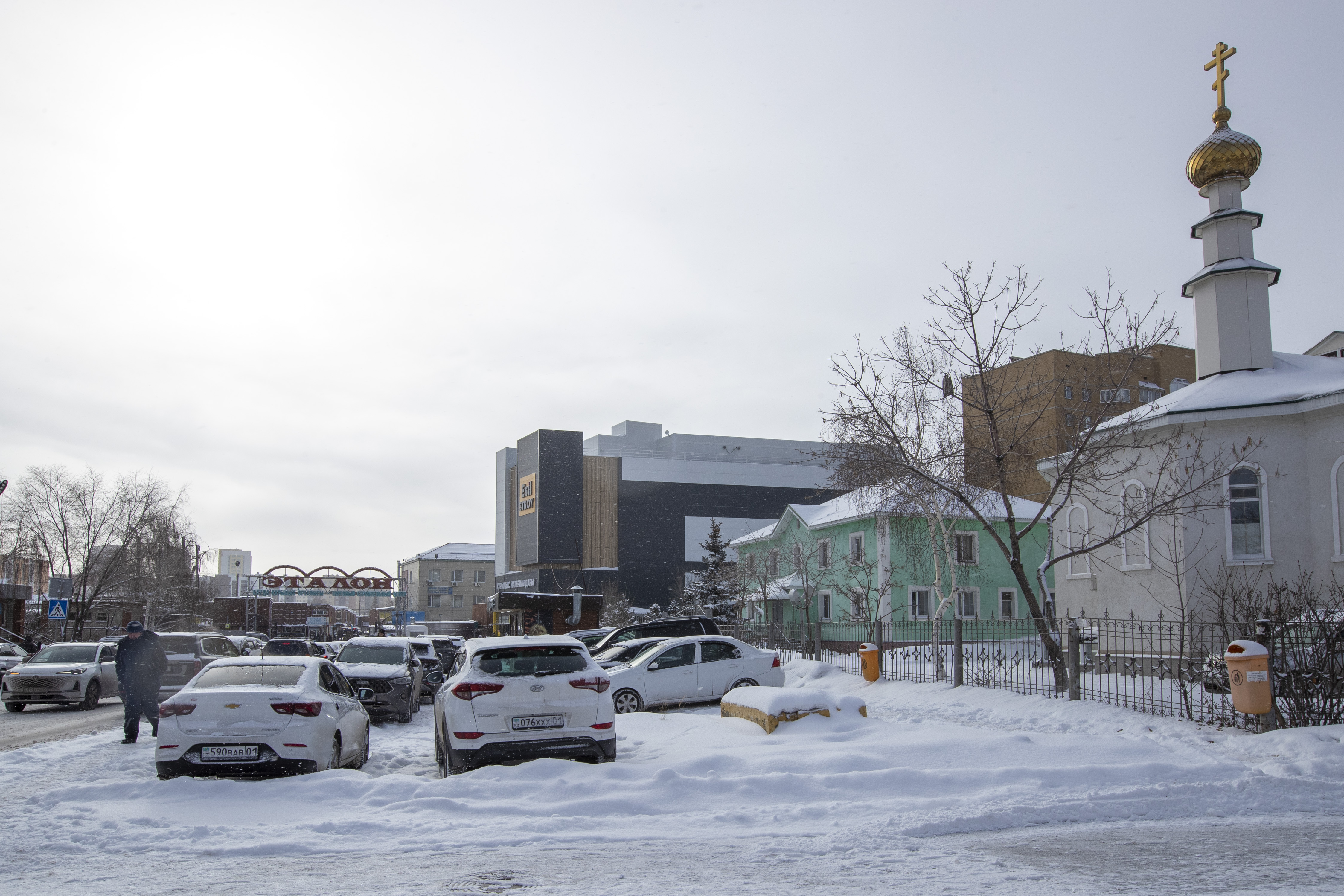 Для тех, кто ещё не знаком с этим местом: рынок расположен аккурат за православной церковью, на правом берегу Астаны. Обилие машин и людей на прилегающей территории создаёт двоякое впечатление — то ли здесь собрались прихожане, то ли горожане приехали за стройматериалами. В действительности всё куда прозаичнее: рынку попросту не хватает парковочных мест.