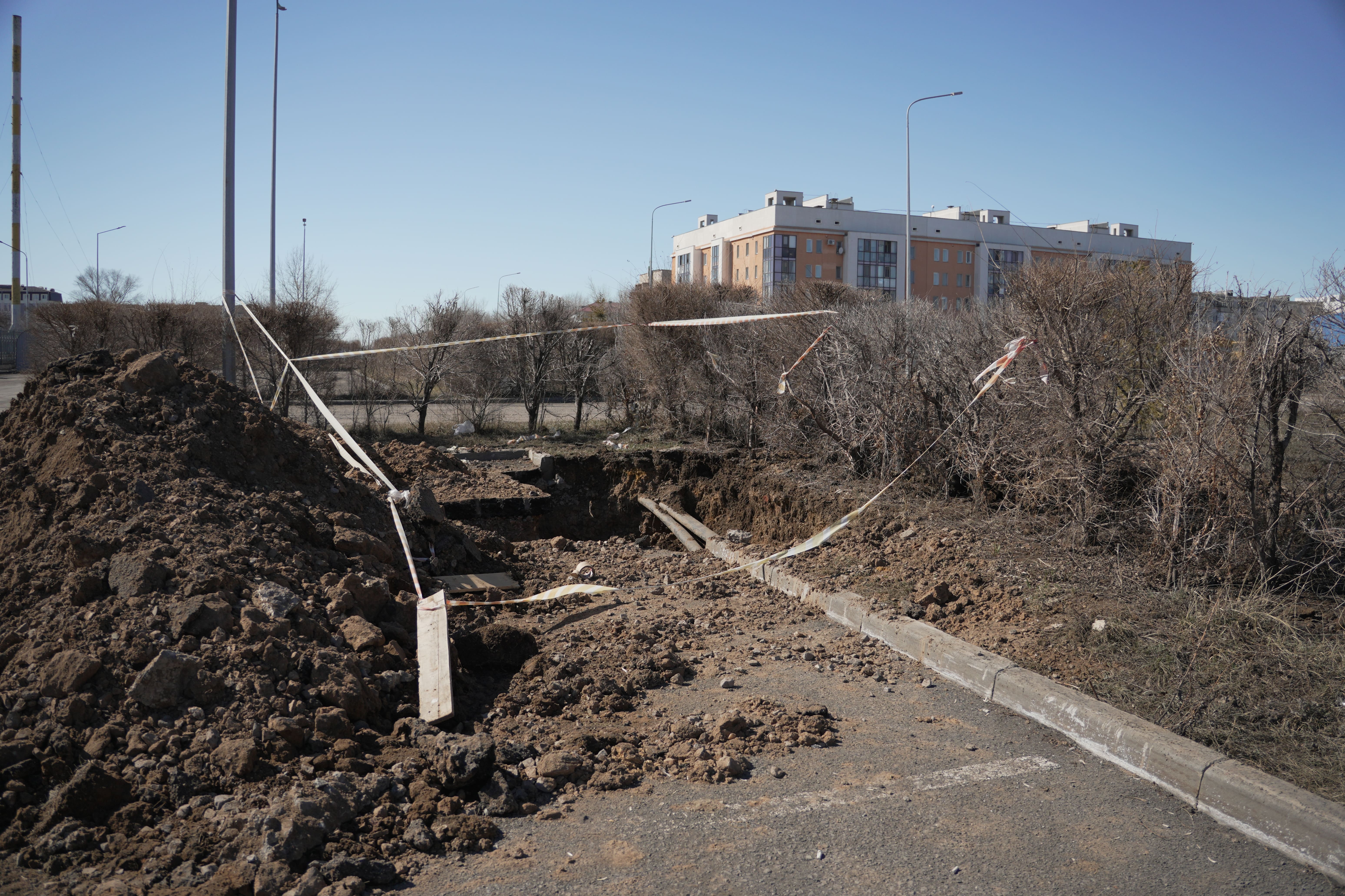 Вдоль проспекта Кабанбай батыра также заметны строительные работы, предположительно здесь прокладывают инженерные или газовые сети. Не исключено, что это связано с активной застройкой в этом районе. Ближе к Центральной мечети возводят жилые комплексы и новый торгово-развлекательный центр.