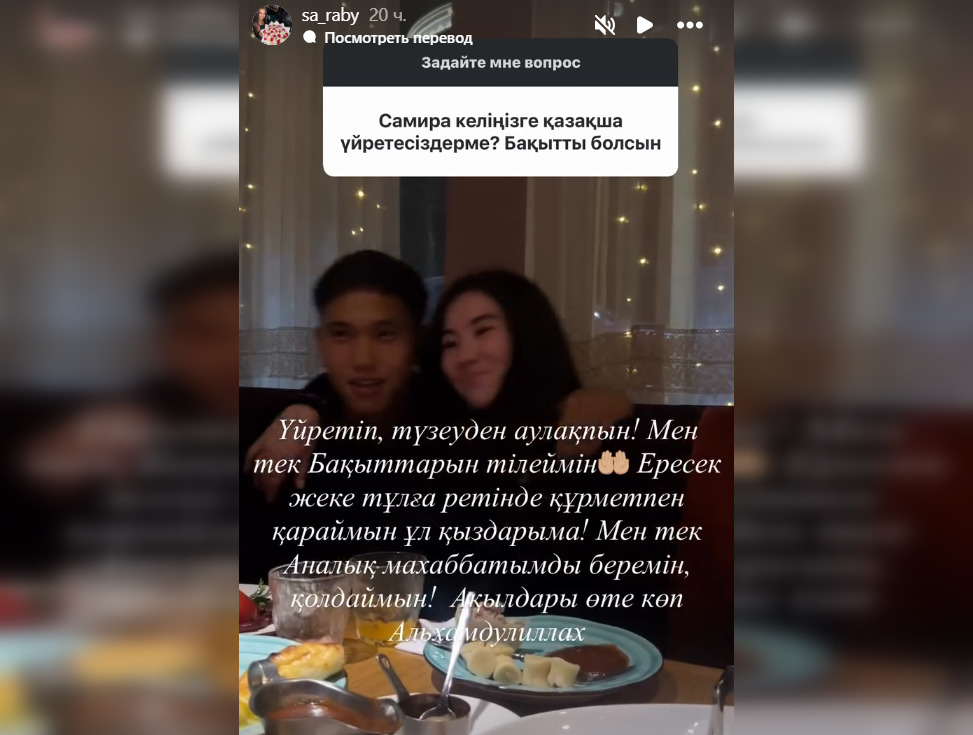 Подписчик задал Сауле вопрос: будет ли она учить возлюбленную сына казахскому языку. Женщина призналась, что никого наставлять она не собирается.