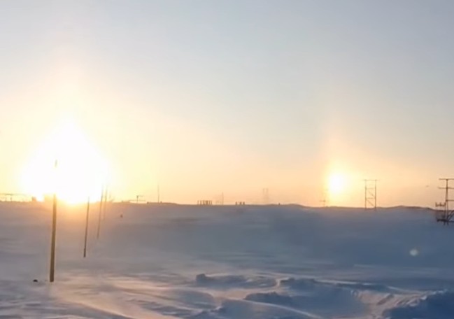 Метеорологи поясняют, что речь идет о паргелии — гало-явлении, которое возникает из-за преломления солнечного света в мельчайших кристаллах льда в атмосфере. При определенных условиях по обе стороны от солнечного диска формируются так называемые «ложные солнца».