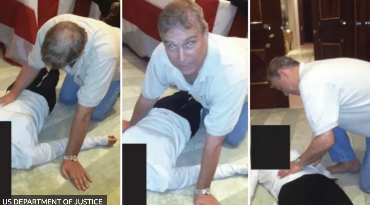 В документах также содержатся фотографии, на которых, по всей видимости, Маунтбеттен-Виндзор стоит на коленях над лежащей на полу женщиной и касается ее талии. Лицо на фото скрыто по требованию американского закона о прозрачности файлов Эпштейна с целью защиты жертв финансиста.