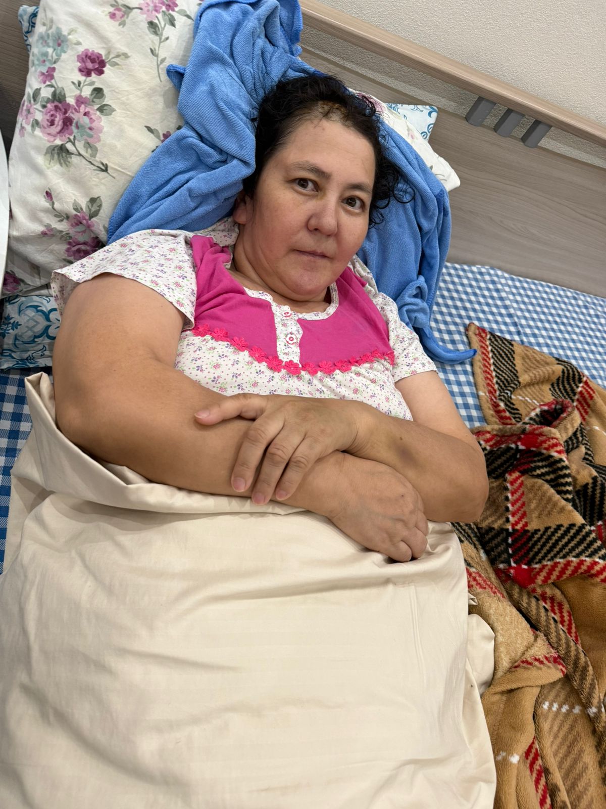 Гульнар уже выписана из больницы, однако до сих пор с трудом передвигается и не может полностью обслуживать себя. Сейчас она находится под присмотром сына и соседки Асель, которая помогает ухаживать за ней.