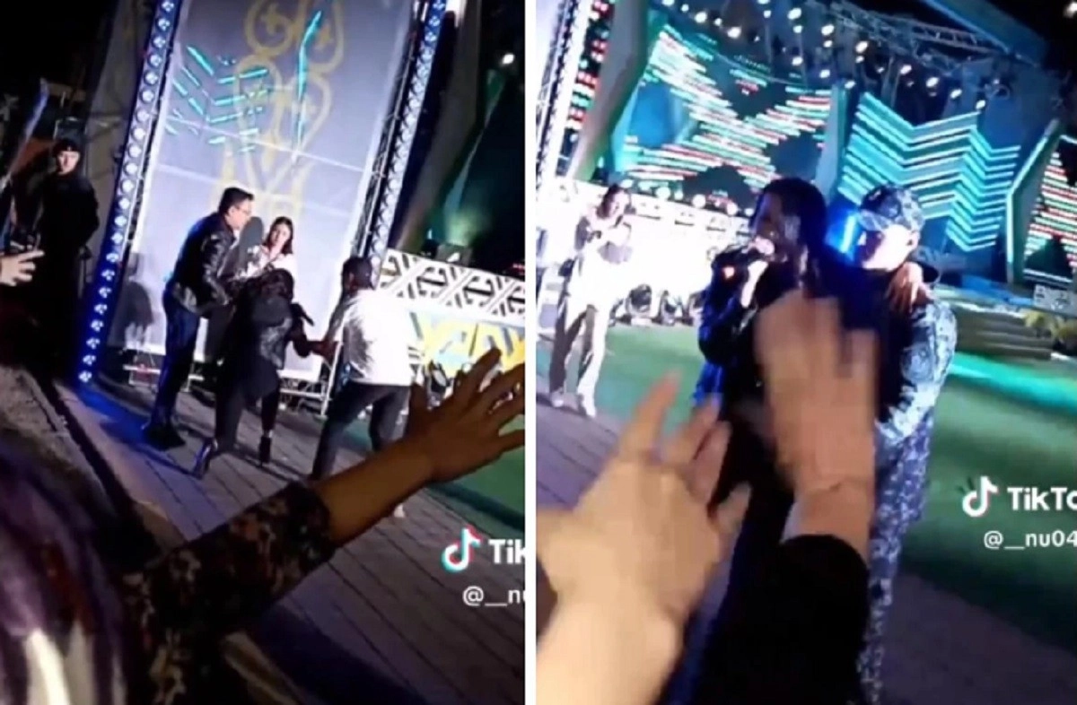 Әнші «Кім үшін» әнін айтып тұрып, сахнада оңбай құлады. Десе де, өнер иесі ән айтуын тоқтатқан жоқ. Жанындағы адамдар өнер иесінің тұруына көмектесті. Әнші қатты ауырсынған болу керек, сахна жанында тұрған тәртіп сақшыларының біріне сүйеніп тұрып әнін жалғастырды.