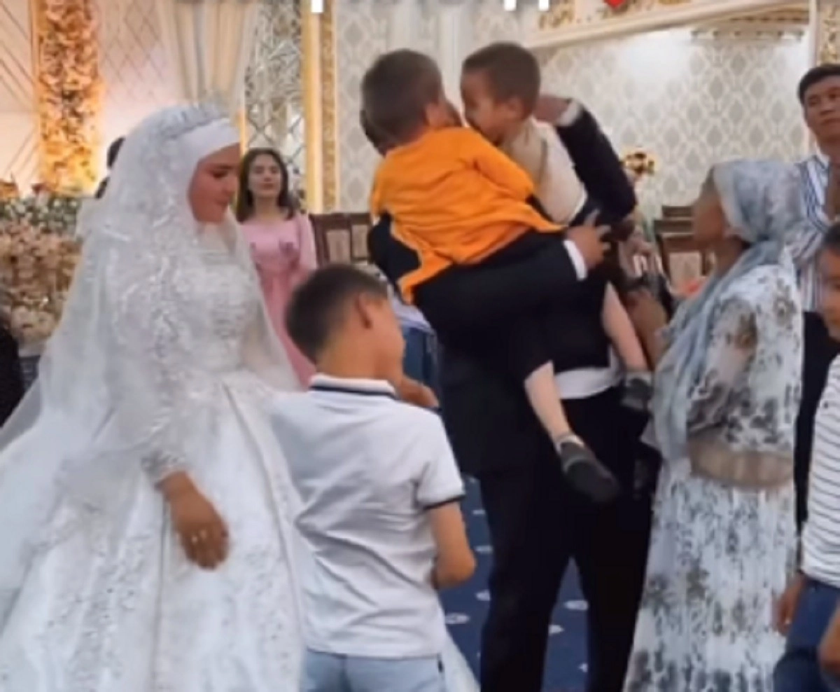 Видеоға сүйенсек, ерлі-зайыптылар үйлену тойын ұйымдастырды, оған күйеу жігіттің бірінші некедегі балалары қатысқан көрінеді. Кадрда балалар әкесіне жүгіріп барып, оны, содан кейін қалыңдығын құшақтайды.