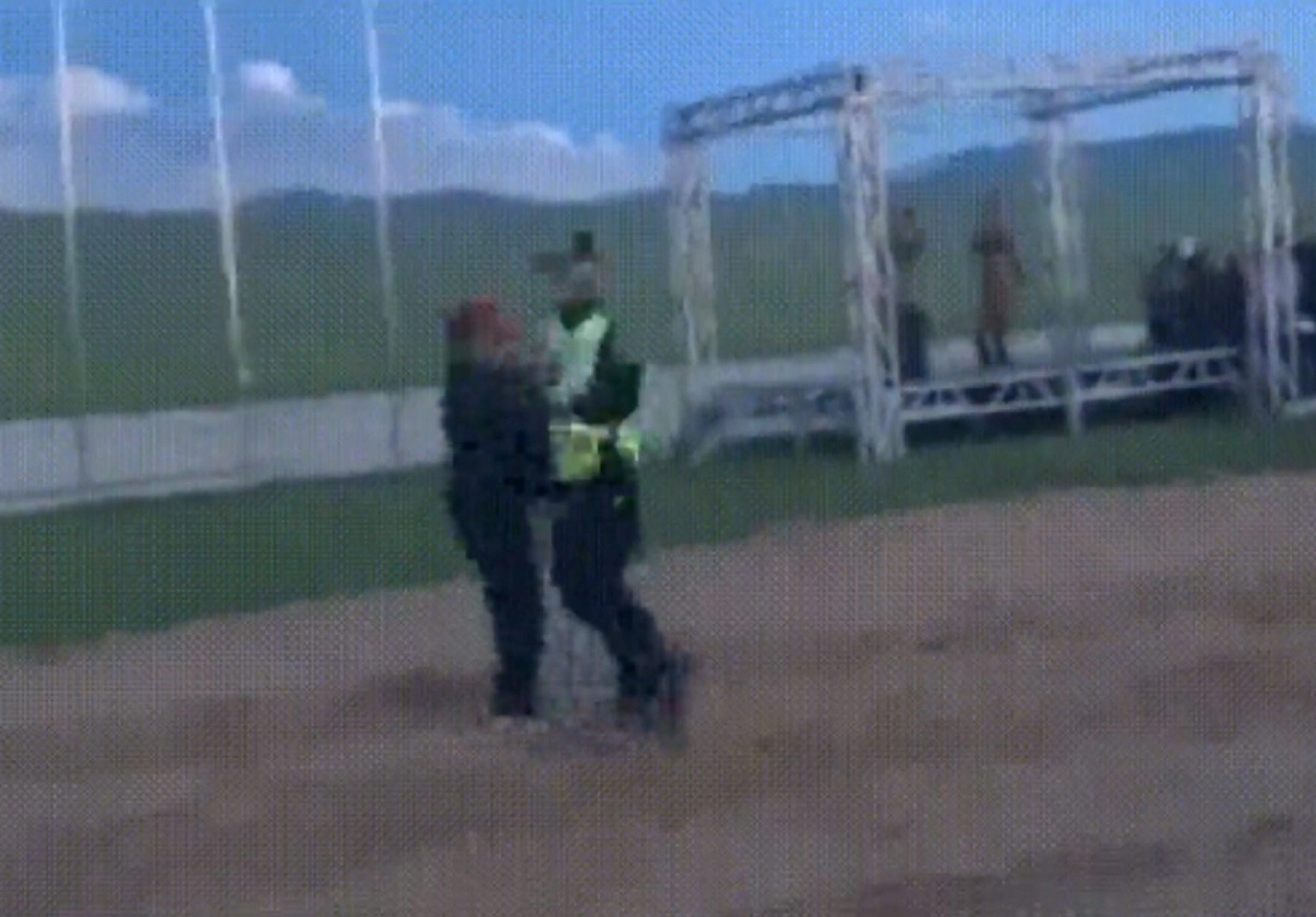 Видеода полиция қызметкері сахнаның қасына барып билеп тұрған ер адамды жұлқыламай, керісінше онымен бірге билеп орнына отырғызады.