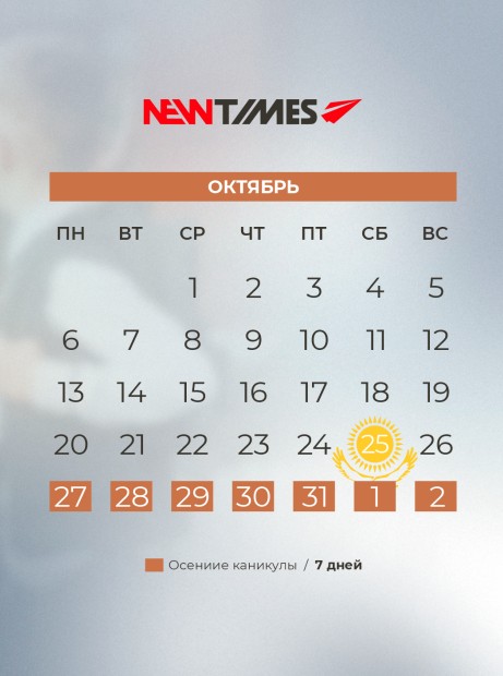 В казахстанских школах завершается первая четверть учебного года. Осенние каникулы продлятся с 27 октября по 2 ноября включительно — всего 7 дней, передает ИА «NewTimes.kz».