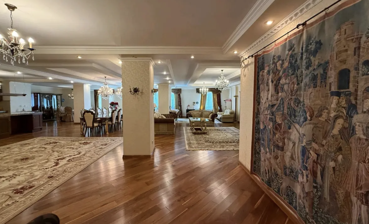 По описанию, квартира выполнена с дорогим ремонтом «для себя»: на полу канадское дерево, входная дверь — бронированная, межкомнатные двери и встроенная кухня — из массива, столешница мраморная.