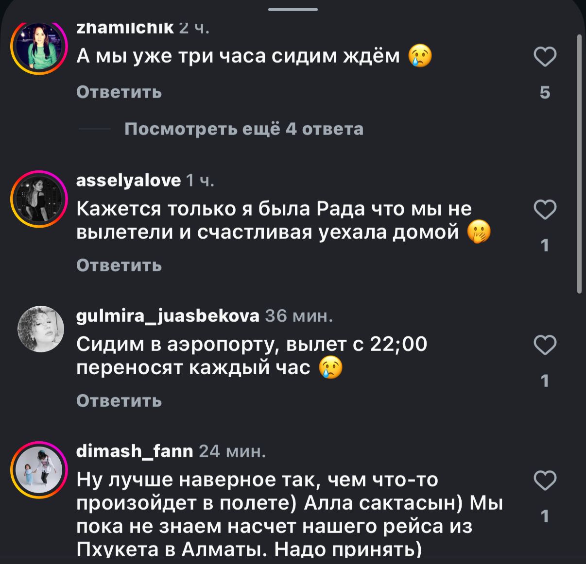 Публикации казахстанских пассажиров в соцсетях продолжают множиться — люди сообщают о многочасовых задержках рейсов и неоднократных переносах времени вылета.