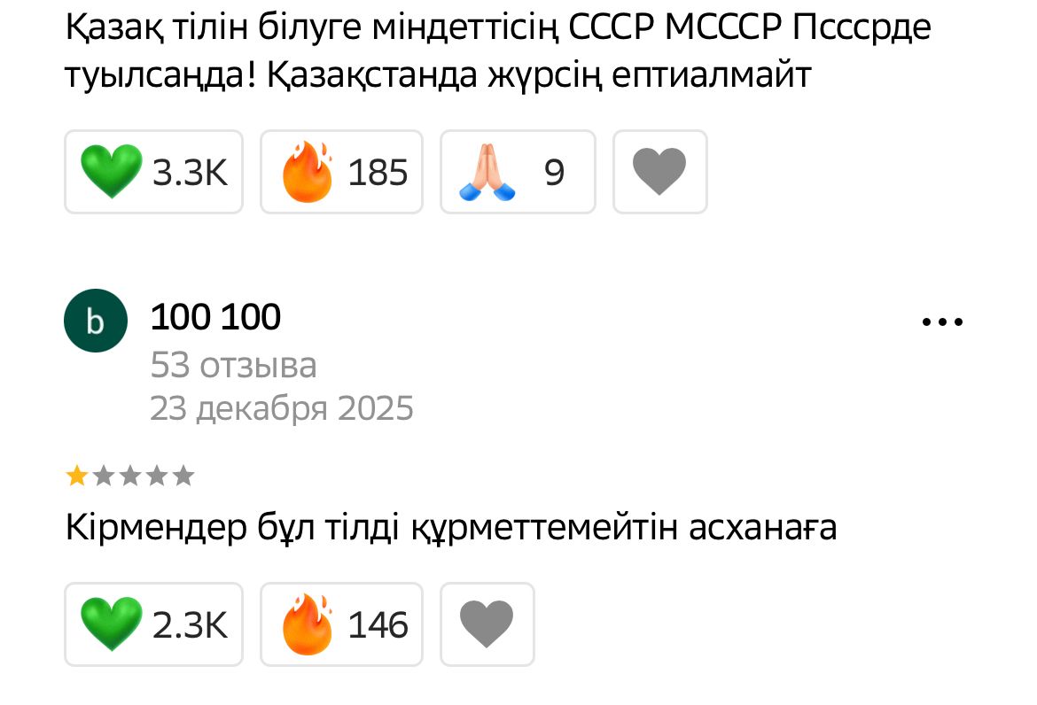 К слову, инцидент уже повлиял и на репутацию самого заведения Gusto. Всего за один день на странице кафе в 2Гис появилось 27 500 комментариев с жалобами на незнание казахского языка сотрудниками и требованиями уволить Елену.
