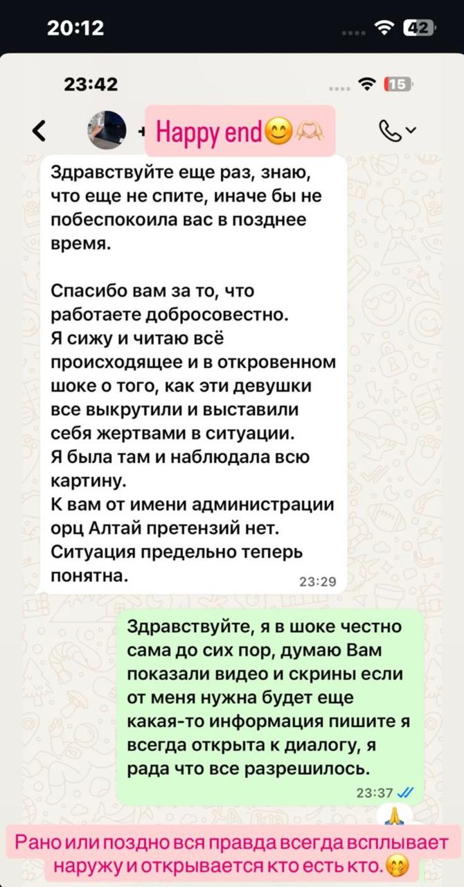 Организаторы на своей официальной странице опубликовали скриншоты переписок с девушкой и заявили, что никого не обманывали и не брали деньги. Они отметили, что девушка по имени Асель опубликовала пост ради хайпа, прикрепив при этом переписки. Согласно одному из скриншотов, она, ранее позиционирующая себя как защитница детей из детского дома, откровенно насмехается над ними.
