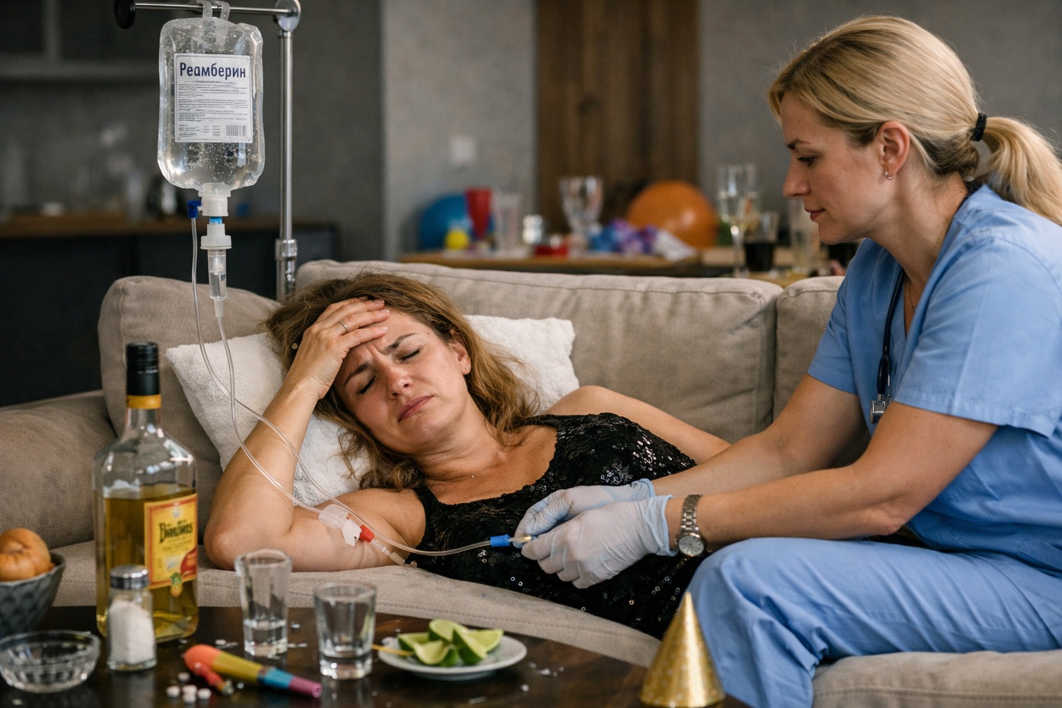 Одна из респондентов рассказала, что после новогодних праздников ей пришлось вызывать медсестру, чтобы поставить капельницу с реамберином — из-за сильного ухудшения самочувствия после употребления алкоголя. По ее словам, ей стало плохо после того, как она перебрала с текилой.