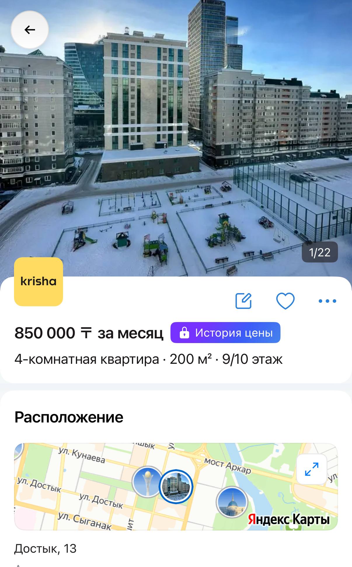 На сайте Krisha.kz однокомнатные квартиры в ЖК «Нурсая» за «Байтереком» начинаются от 250 тысяч тенге, двухкомнатные — от 350 тысяч, трёхкомнатные — 500–700 тысяч, четырехкомнатные – 850 тысяч -1,5 миллинов тенге. В ЖК «Panorama Park», рядом с ЭКСПО, однушки стартуют от 250 тысяч, двушки — от 350 тысяч, трёшки — от 450 тысяч в зависимости от площади и ремонта.