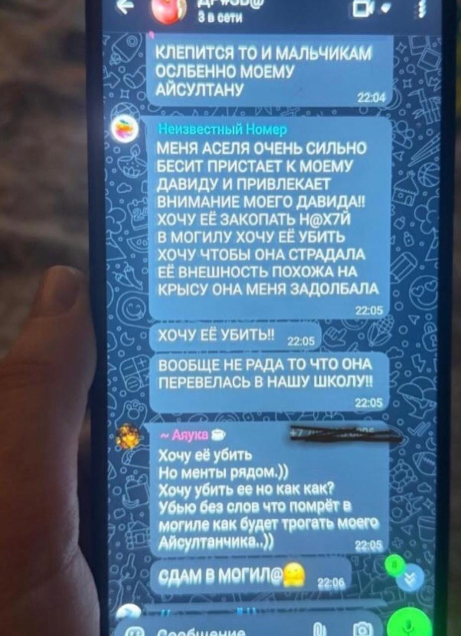 Как сообщила мама Асель, переписку в детском чате случайно обнаружил один из родителей одноклассников. В этих сообщениях, предположительно, обсуждали ее дочь, используя оскорбительные формулировки. В чате присутствовали насмешки, резкие выражения и даже угрозы.