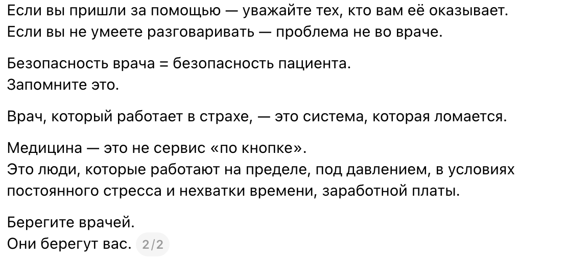 «Раньше в больницу шли за помощью. Теперь туда приходят с ножом», – говорится в одном из обращений.