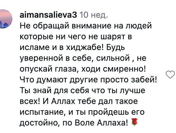 «Не обращайте внимания на людей, которые ничего не понимают в исламе и хиджабе»,- также поддержали девушку.
