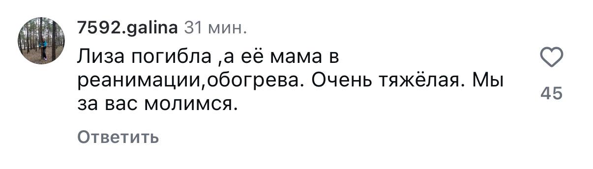 В комментариях пользователи сообщают, что мать погибшей девочки находится в реанимации с тяжёлыми ожогами. Официальной информации о её состоянии пока не опубликовано.