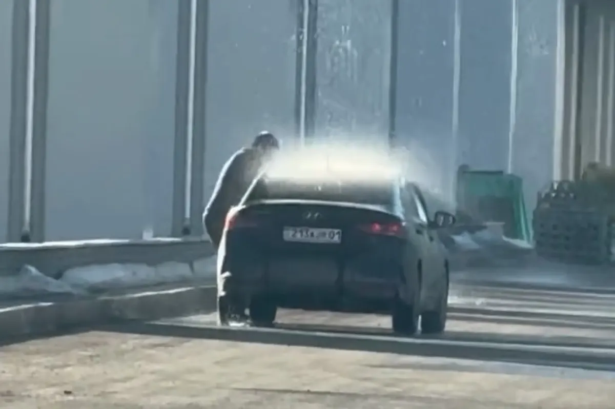 Мужчина мыл машину под льющейся водой с LRT в Астане