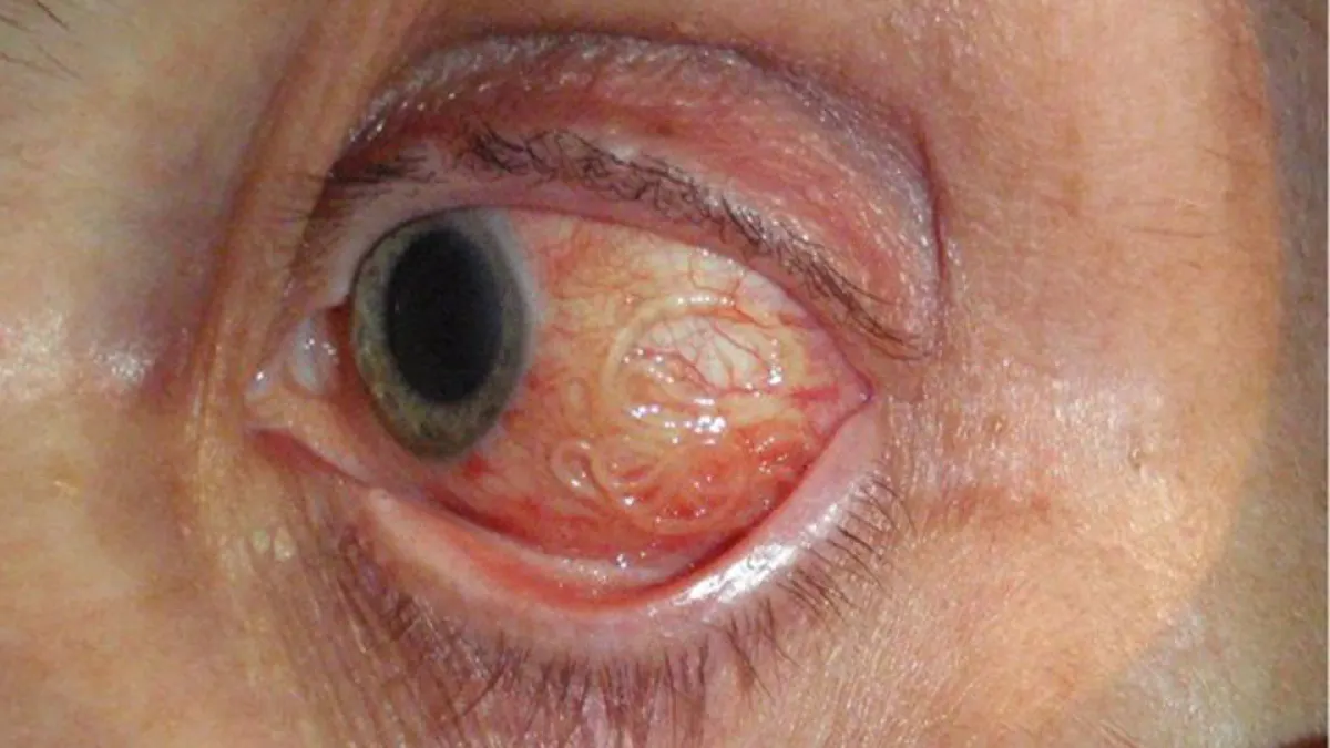 Медики диагностировали у пациента дирофиляриоз — паразитарное заболевание, при котором черви могут развиваться под кожей и в тканях глаза. Мужчина вспомнил, что прошлым летом его укусил комар прямо в глаз, однако тогда он не придал этому значения. Со временем на месте укуса появилось небольшое уплотнение, которое постепенно увеличивалось.