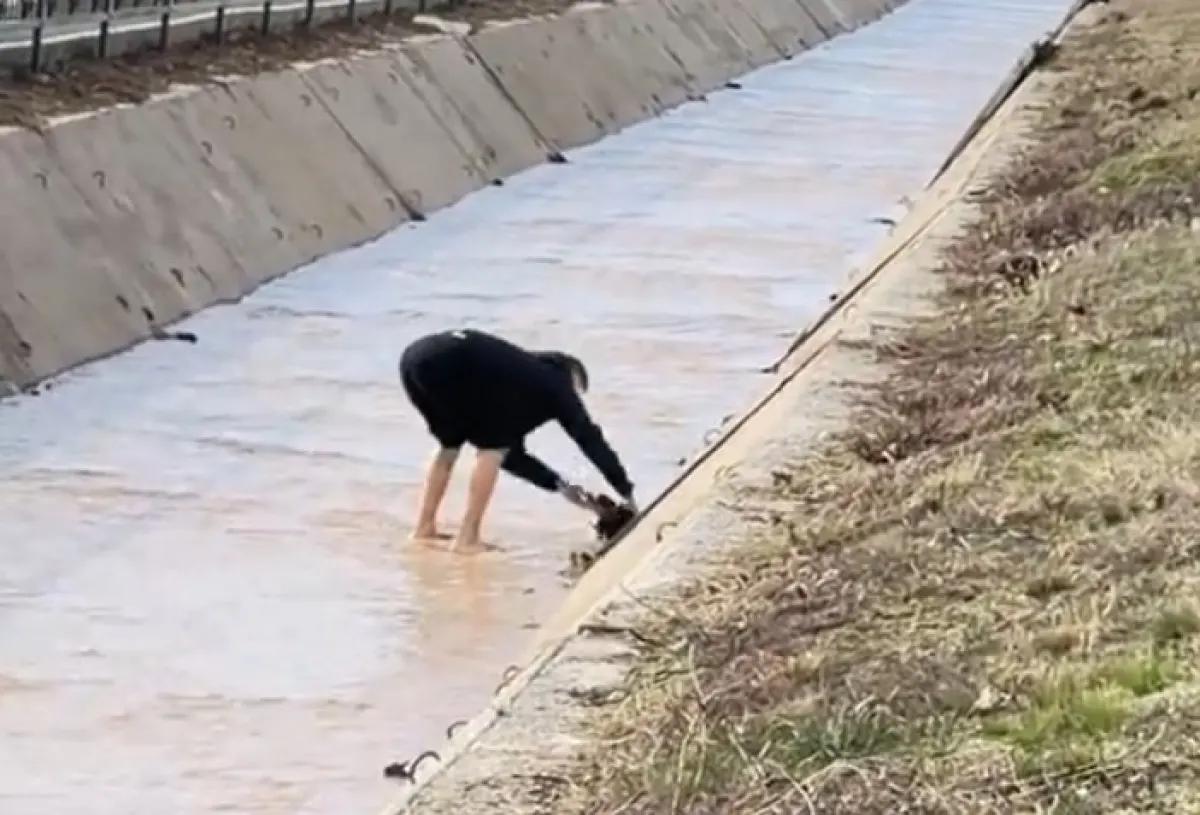 В TikTok появилось видео, на котором молодой человек спасает щенка, упавшего в реку, передает ИА «NewTimes.kz».