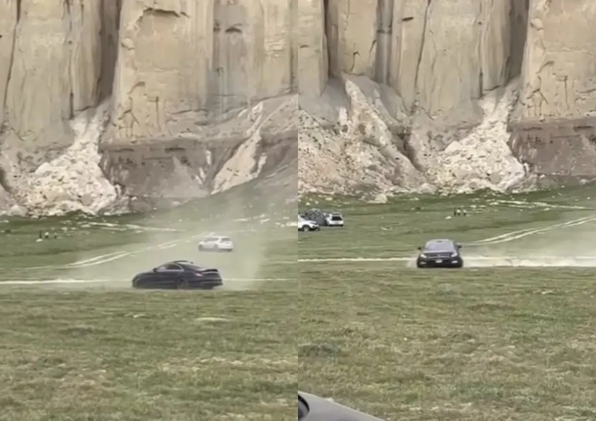 Актауский блогер Азамат Сарсенбаев опубликовал видео, где автомобили устроили дрифт в долине замков Мангистауской области, передает ИА «NewTimes.kz».