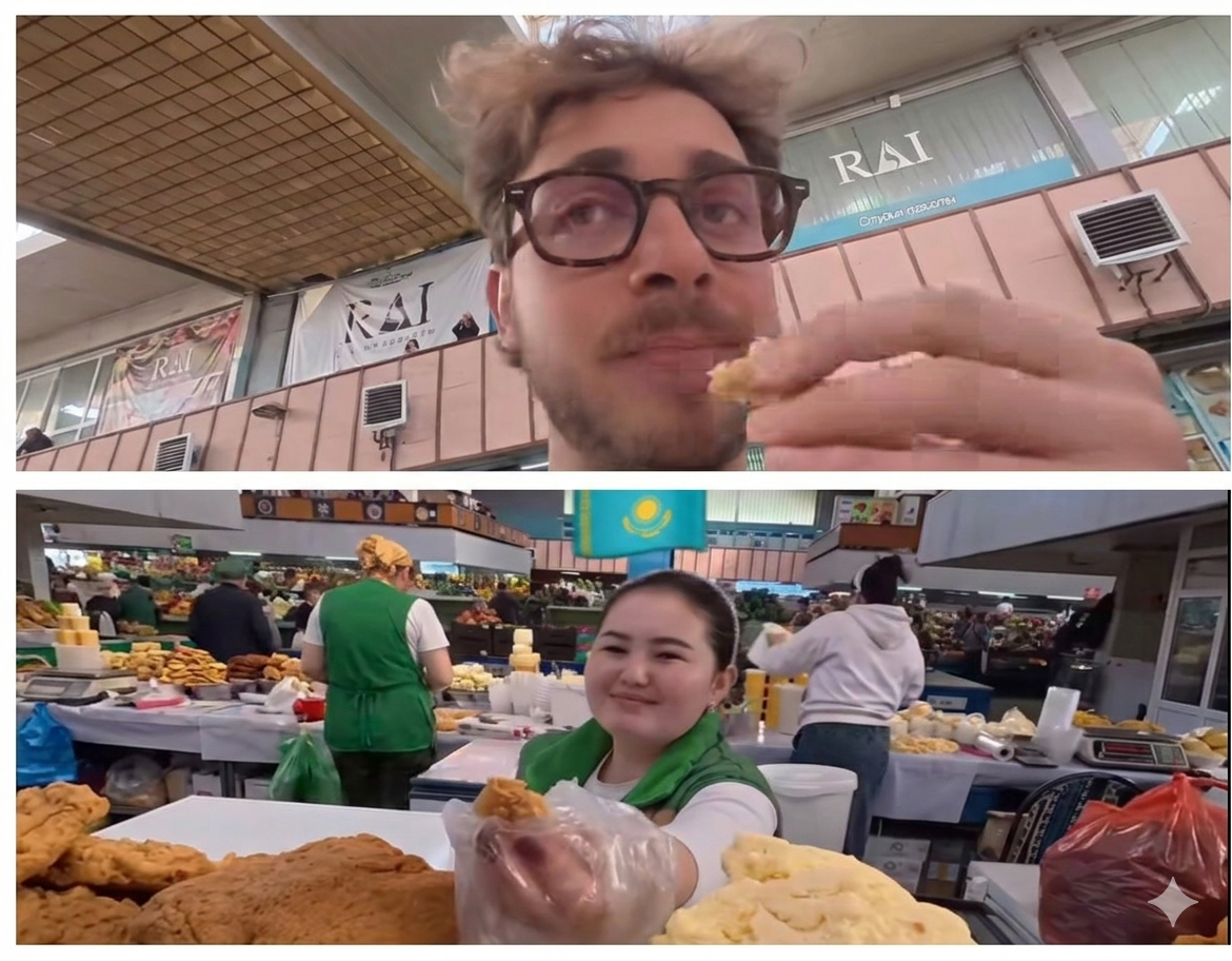 В социальных сетях распространилось видео, на котором французский турист пробует сладкий сыр на рынке Алматы, передает ИА «NewTimes.kz».