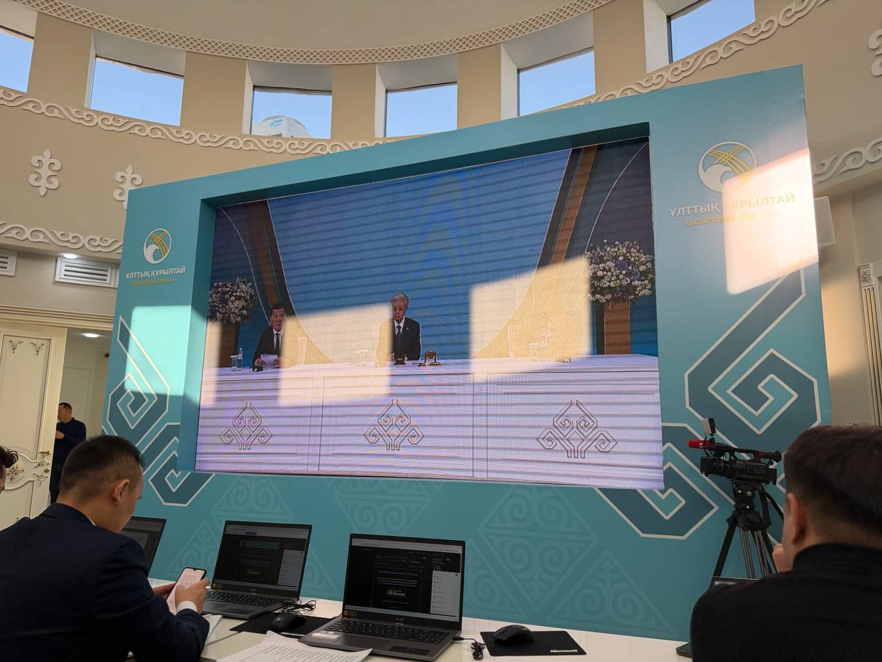 Столичные журналисты с 10:00 начали собираться в здании «Қазмедиа орталығы», где для них подготовили большой пресс-зал на 21-м этаже. Там в режиме реального времени будет транслироваться выступление президента на Курултае.