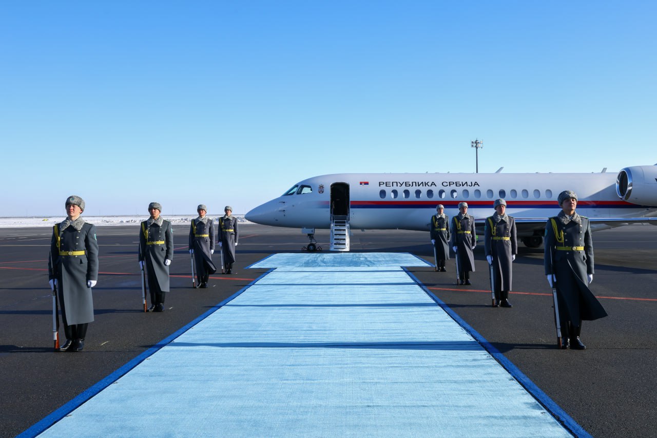 В столичном аэропорту сербского лидера встретил премьер-министр Казахстана Олжас Бектенов.