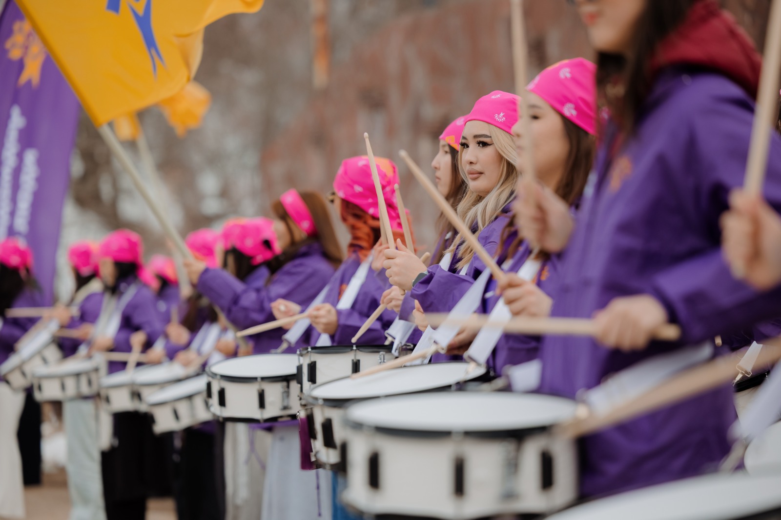 Ритм барабанов сопровождал шествие и стал визуальным и звуковым акцентом акции, призывая казахстанцев проявлять гражданскую активность и принять участие в референдуме по обновлённой Конституции, который состоится 15 марта.