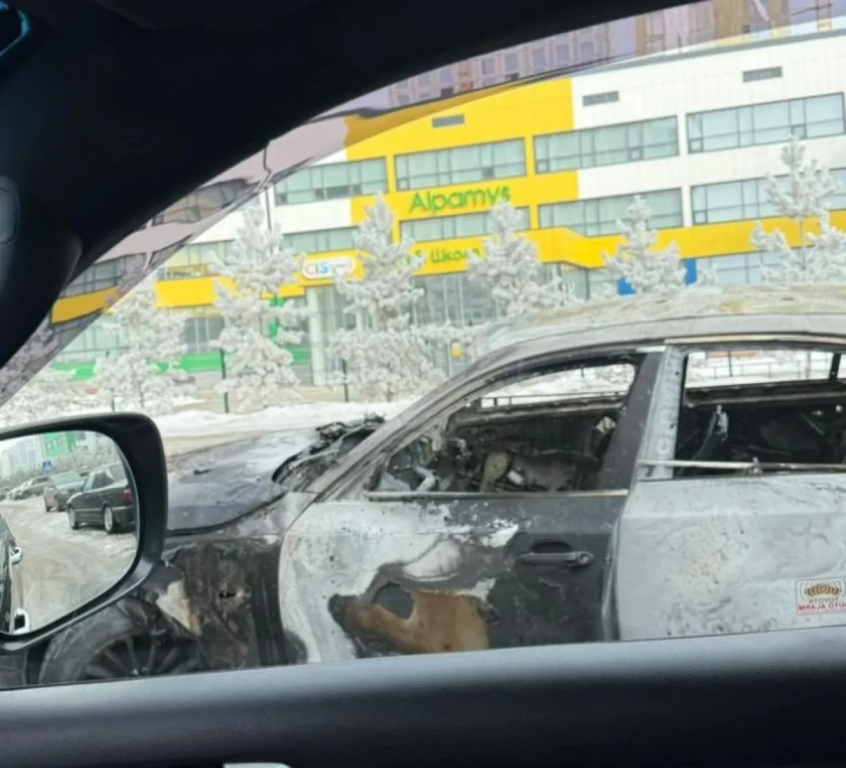 В Астане у школы «Алпамыс» сгорел автомобиль