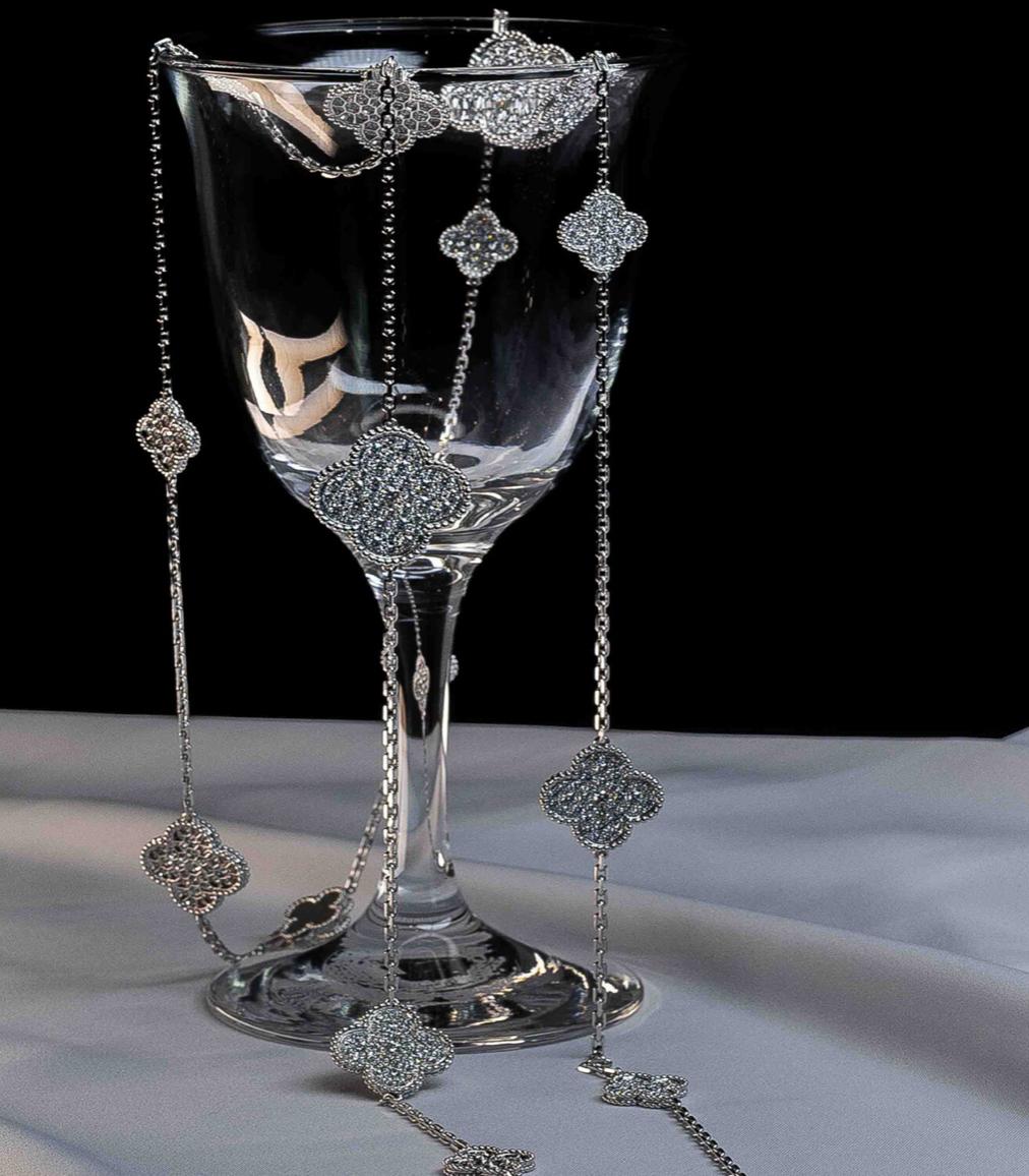 Следующий лот — цепочка с бриллиантами Van Cleef & Arpels за 46,797 миллиона тенге. На сентябрьском аукционе её цена составляла 38,6 миллиона, то есть выросла примерно на 8 миллионов. Видимо, её сочли не настолько роскошной.