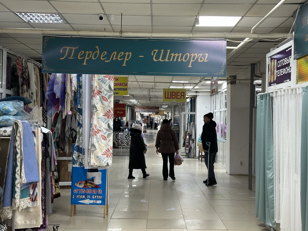 После этого я отправился на «Көк Базар», где лично убедился в словах предпринимательницы Айгерим. Весь второй этаж напоминал настоящий текстильный рай: шторы, постельное белье, ткани, разнообразные нити и одежда. Женщина, работающая в одном из бутиков, посоветовала также заглянуть на соседний рынок «Ануар», где, по ее словам, тоже разместили предпринимателей из «Big Шанхая».