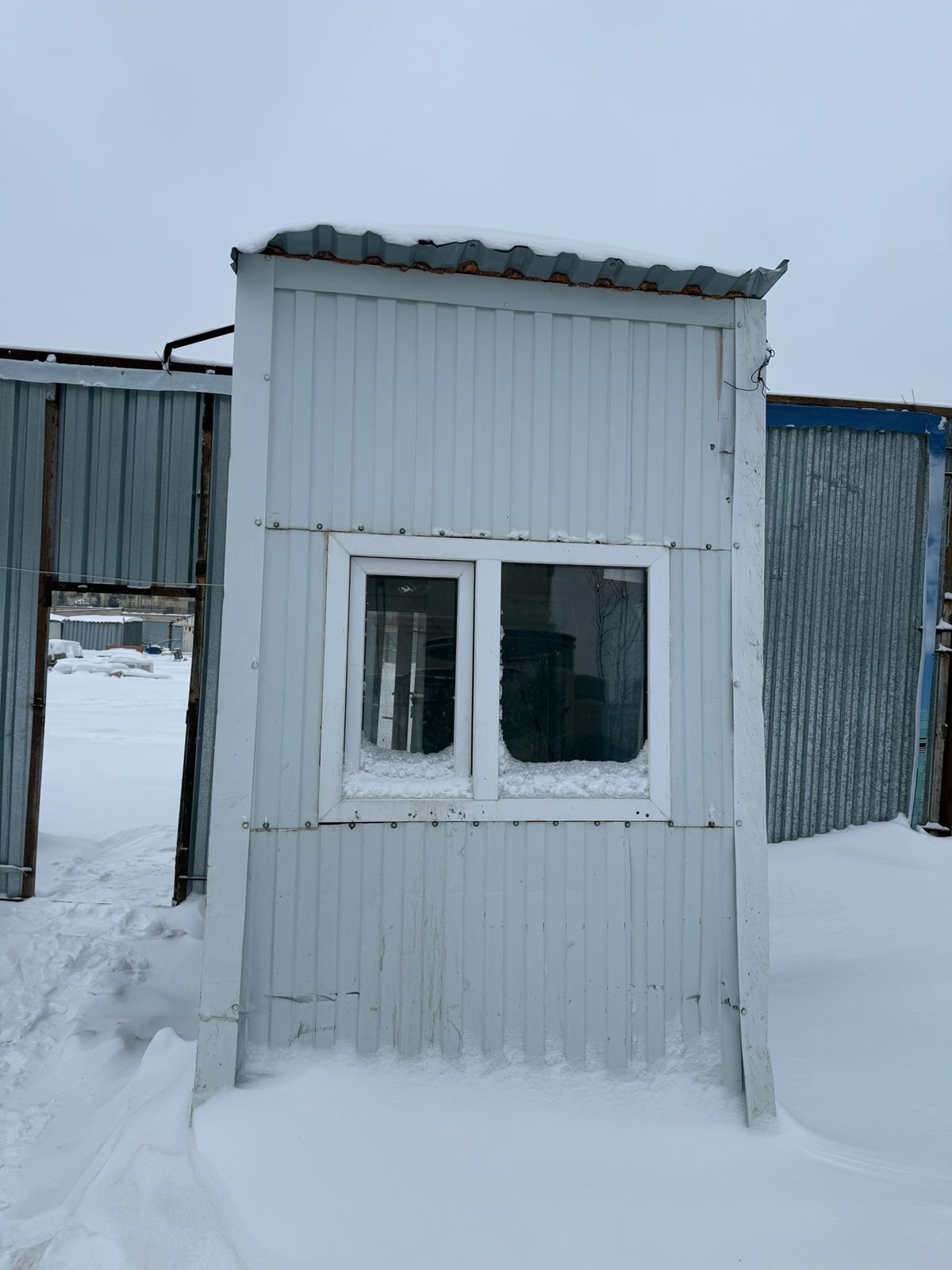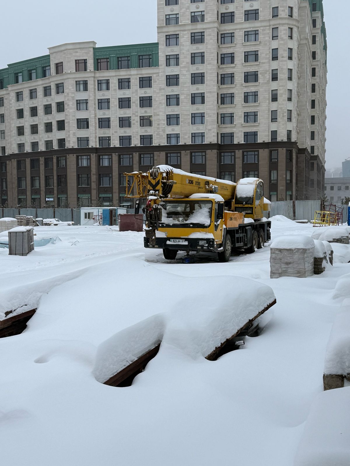 Подойдя ко входу на строительный объект, журналист обнаружил, что дверь открыта, поэтому попасть внутрь всё же удалось. На территории находился один мужчина — предположительно рабочий, который расчищал дорожку от снега.
