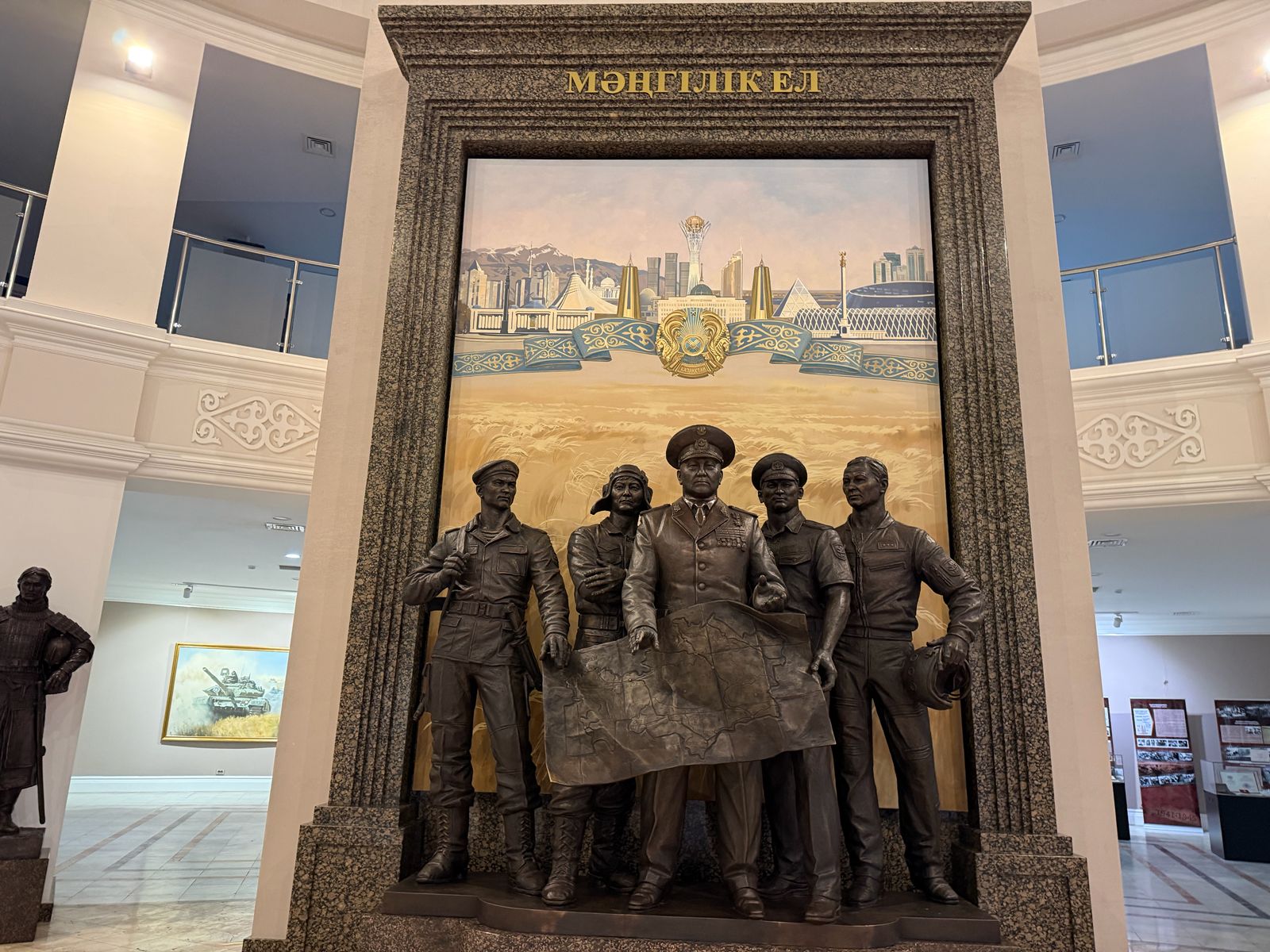 При этом из экспозиции музея убрали только восковую фигуру Нурсултана Назарбаева. Его памятник по-прежнему остаётся на месте. У входа в музей размещена масштабная композиция, символизирующая три вида Вооружённых сил Казахстана. В центре инсталляции до сих пор находится металлическая фигура Назарбаева в военной форме.