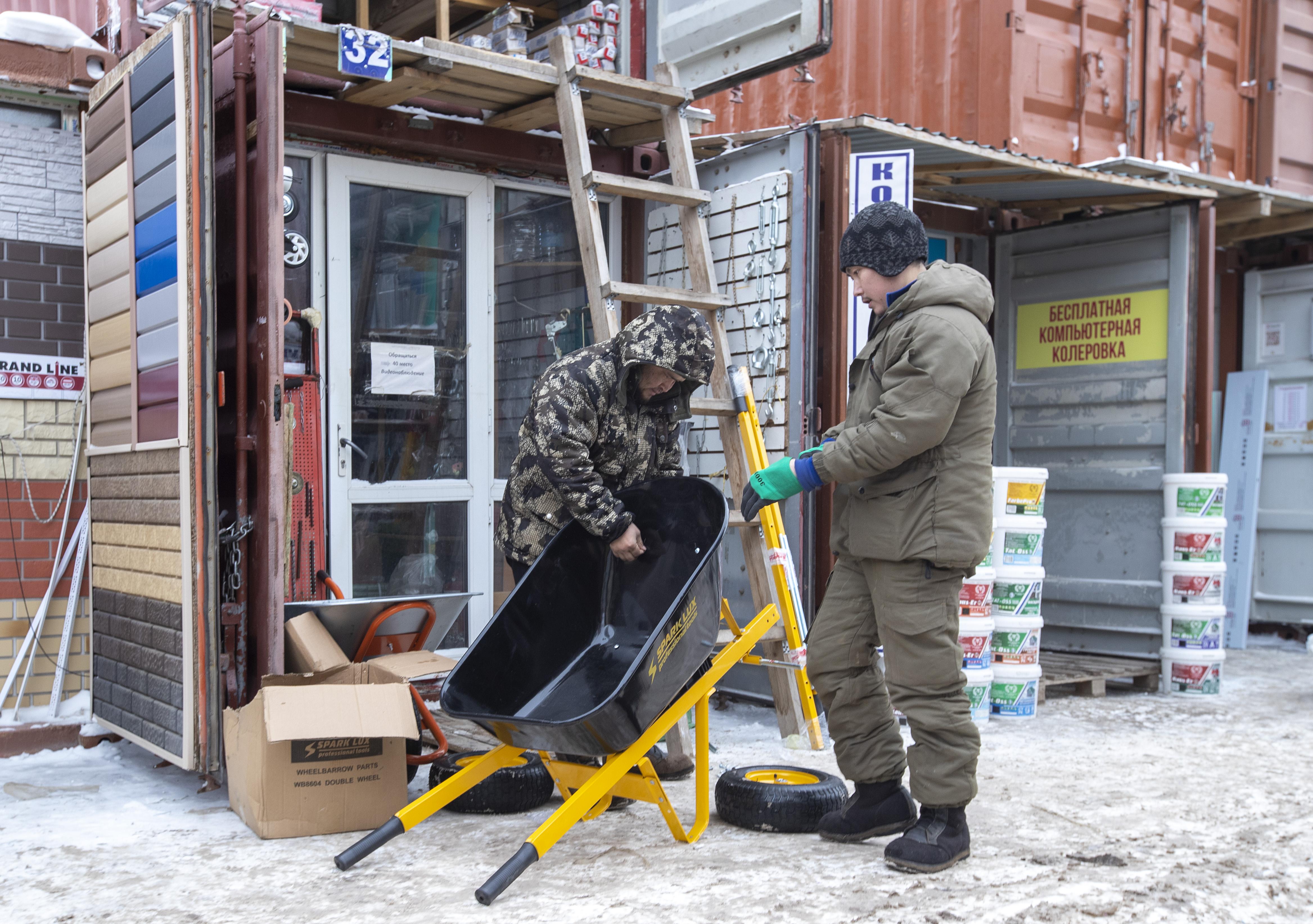 На торговлю предприниматель не жалуется — проходимость, по его словам, в целом хорошая. В этом бизнесе он уже двенадцать лет и начинал именно на рынке «Эталон». При этом Аяз отмечает, что не видит принципиальной разницы между продажей стройматериалов в контейнере на рынке и в тёплых, светлых торговых домах, расположенных по соседству.