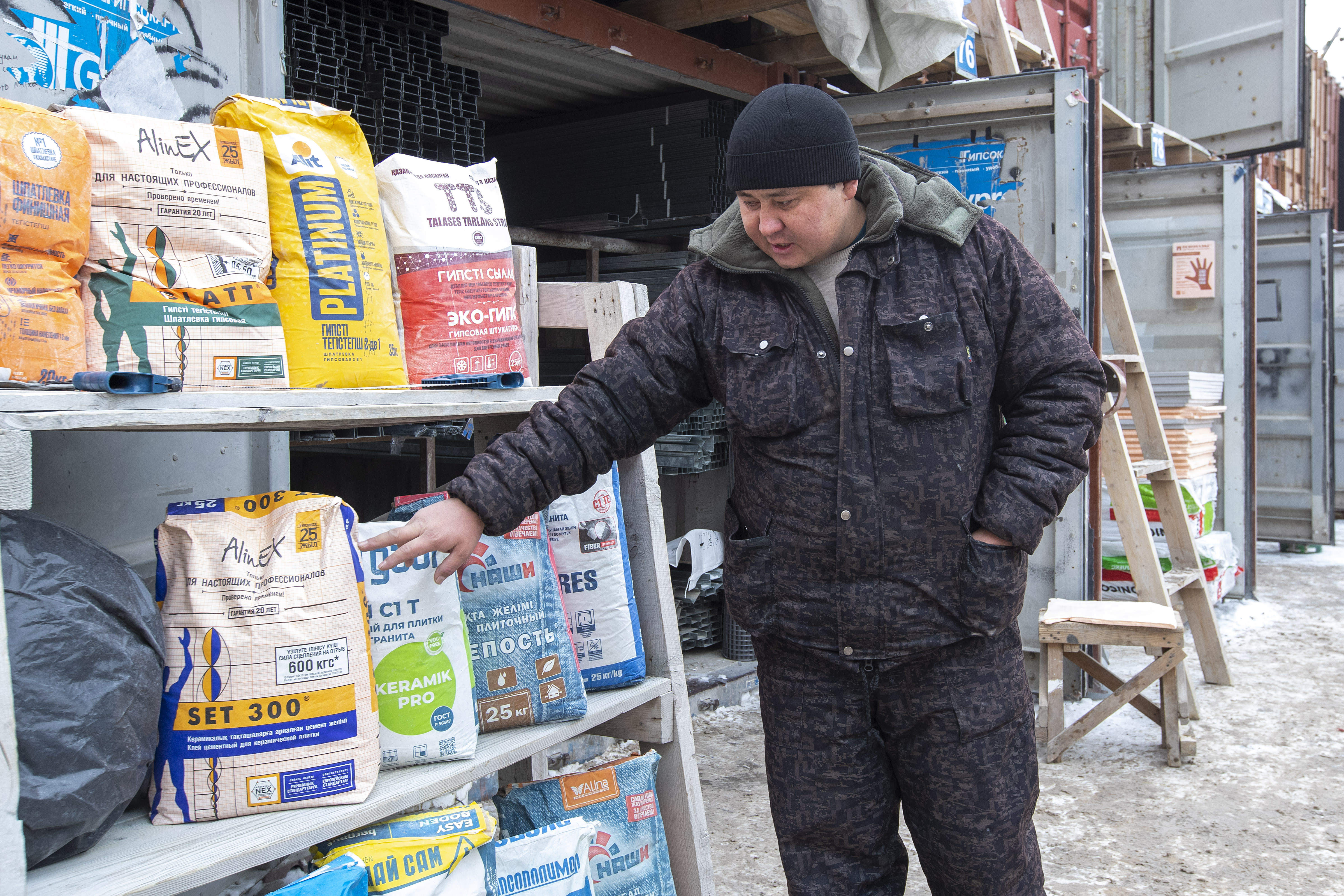 «Я стараюсь объяснять, что наши клеи ничем не хуже зарубежных. Возможно, раньше они действительно уступали, но сейчас качество заметно выросло. Многое зависит и от самих строителей — узбекских и таджикских мастеров. Они долгое время работали в России и привыкли к определённым материалам. Бывает, заказчик покупает клей Tytan, а мастер с ним раньше не сталкивался и просто опасается использовать: вдруг не будет держать плитку. В итоге клей возвращают и заменяют на более дорогой, но привычный Alinex», — рассказывает Жаксылык.