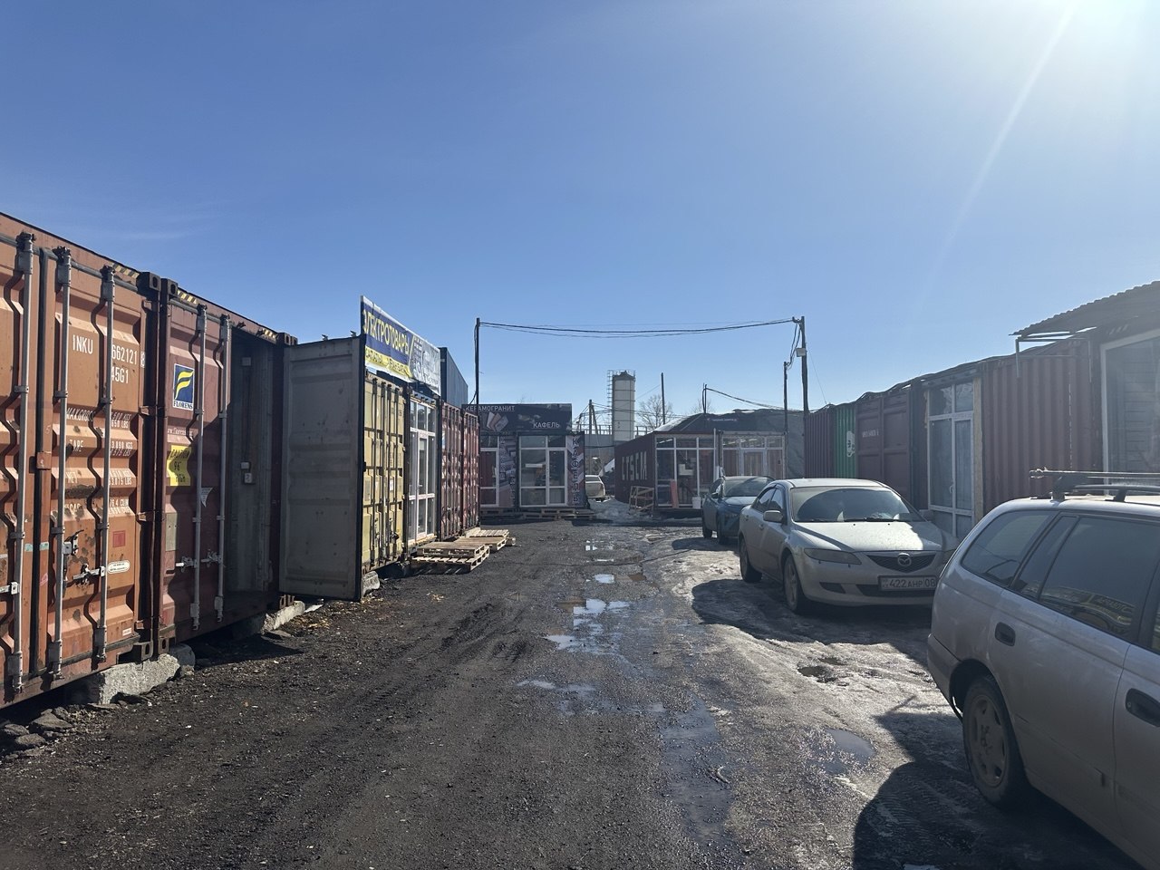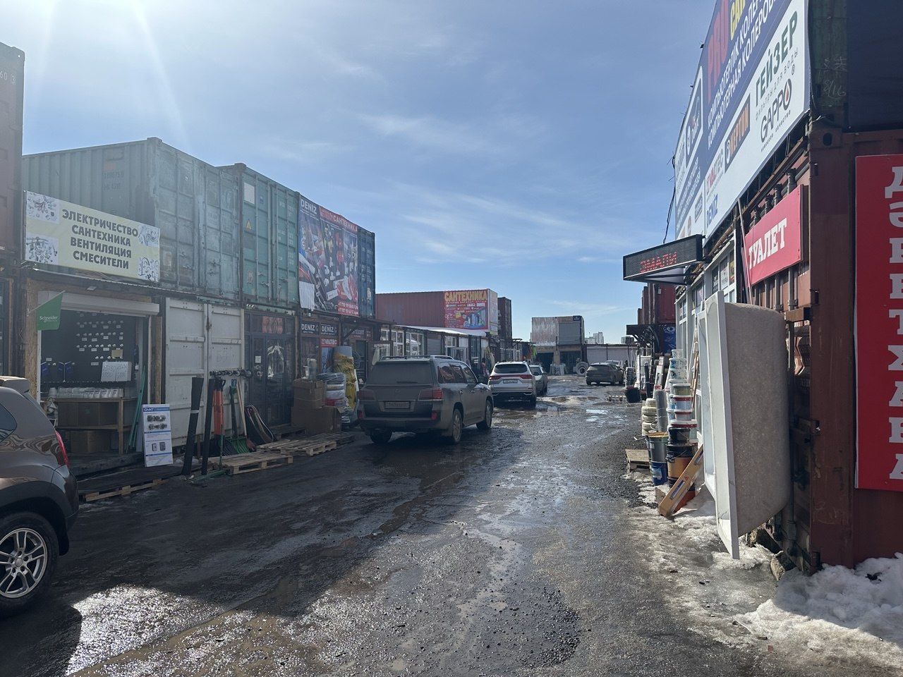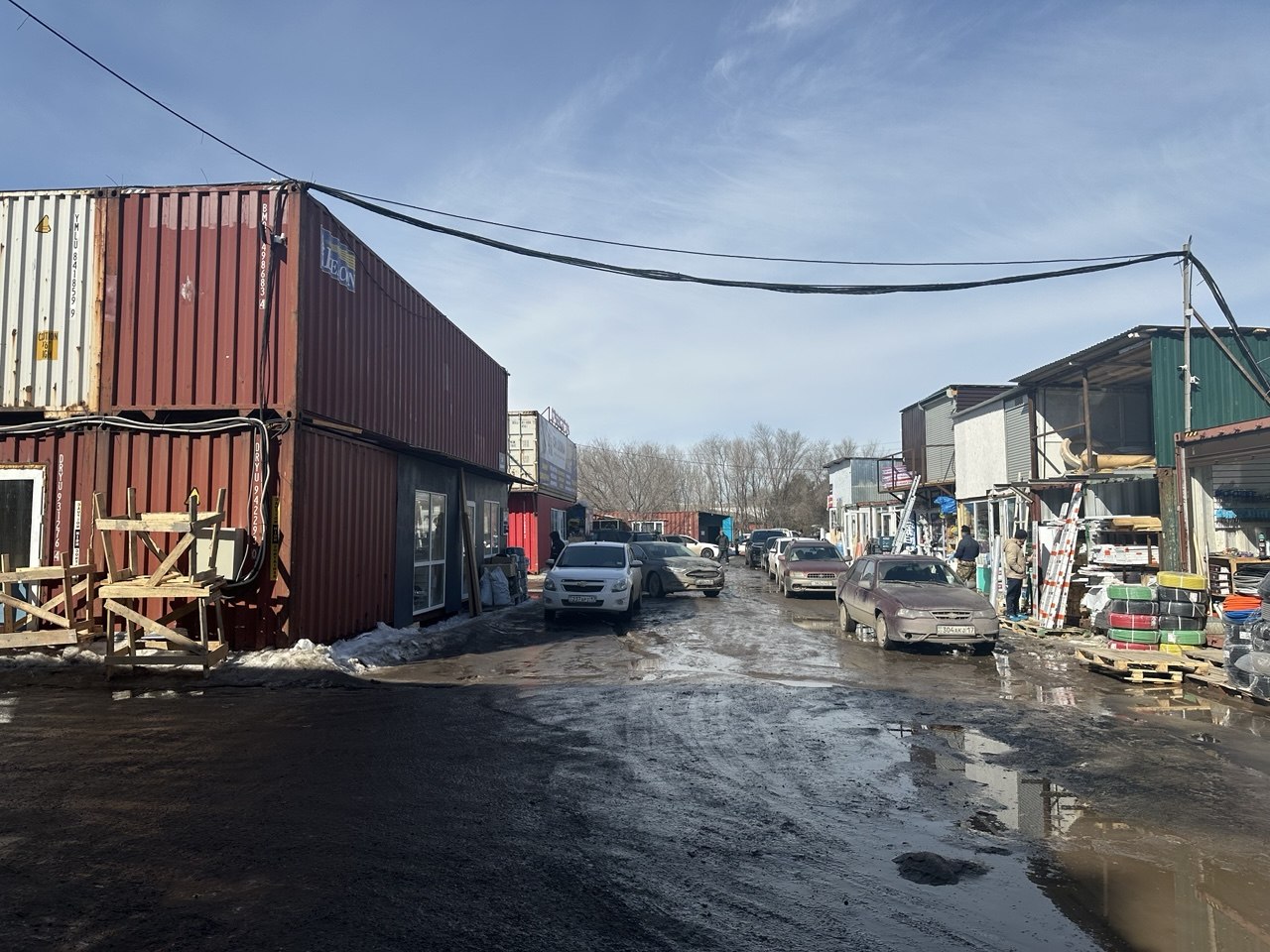 Что касается нового места, куда переехал рынок, то визуально оно напоминает уменьшенную версию строительного рынка «Эталон». Здесь так же в ряд выстроены контейнеры, сюда заезжают машины, загружают товары и стройматериалы.