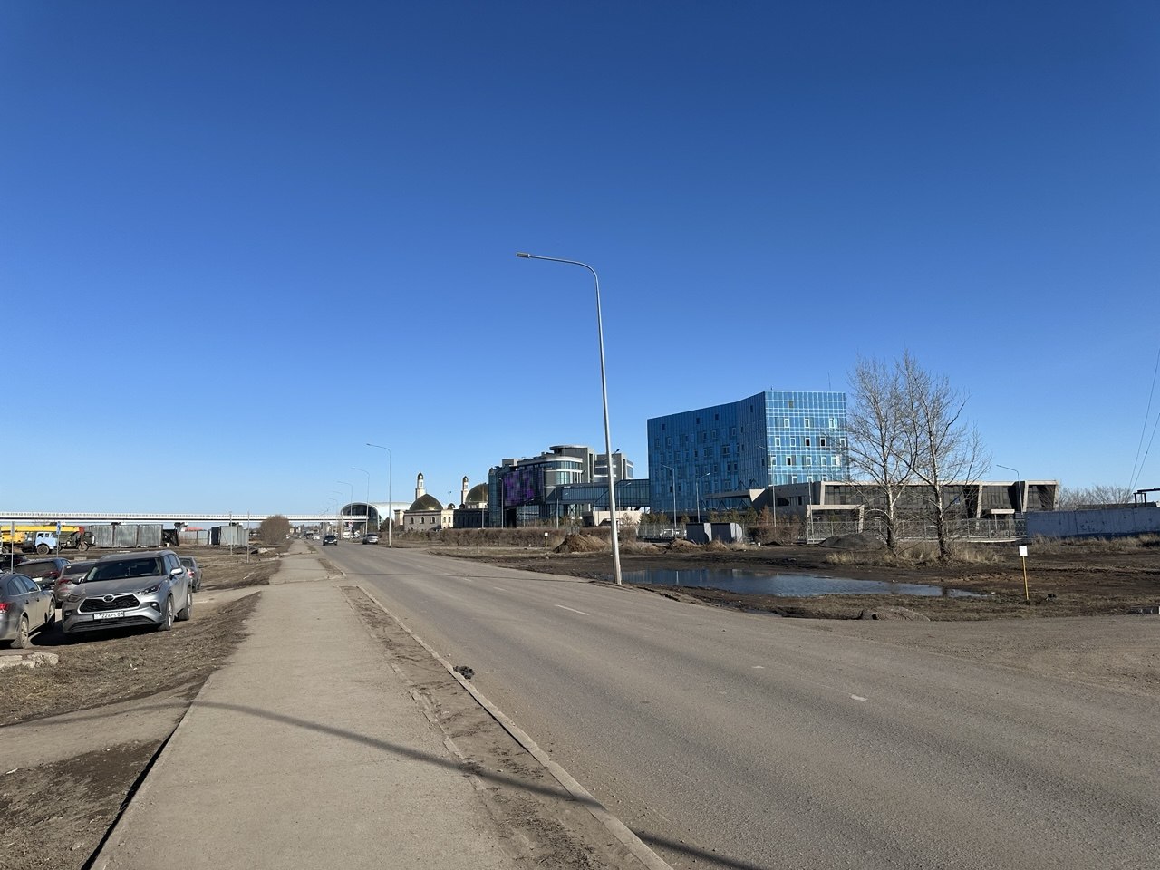 Вдоль проспекта Кабанбай батыра также заметны строительные работы, предположительно здесь прокладывают инженерные или газовые сети. Не исключено, что это связано с активной застройкой в этом районе. Ближе к Центральной мечети возводят жилые комплексы и новый торгово-развлекательный центр.