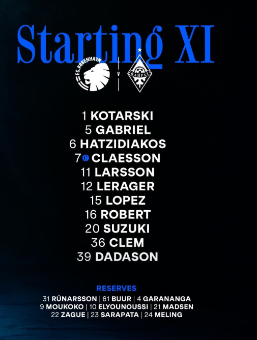 «Копенгаген»: Котарски, Перейра, Хацидиакос, Классон, Ларссон, Лерагер, Лопес, Роберт, Судзуки, Клем, Дадасон.