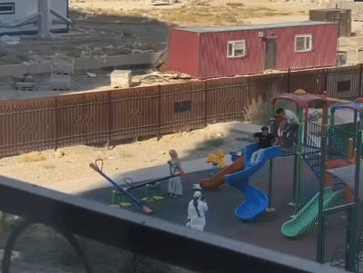 Видео на странице в Instagram разместила пользователь _ainura_omarova_. На кадрах двое мужчин развлекаются на детской площадке, в то время как две женщины снимают происходящее на камеру.