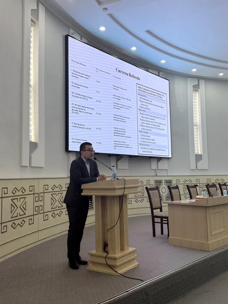 Кроме того, особое внимание было уделено ранней диагностике заболеваний щитовидной железы. Интервенционный хирург-радиолог Арман Ибраев рассказал об опыте внедрения в НИИ кардиологии и внутренних болезней метода радиочастотной абляции при доброкачественных образованиях щитовидной железы.