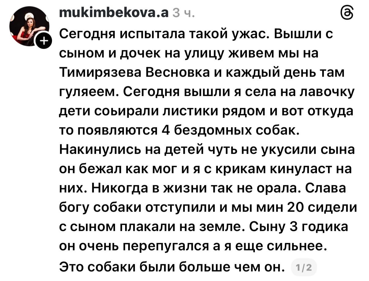 Другие подтверждают, что собаки в районе проявляют агрессию: «Мы шли с детьми, и они выбежали на нас с лаем… Не представляю, если бы дети были без взрослых».