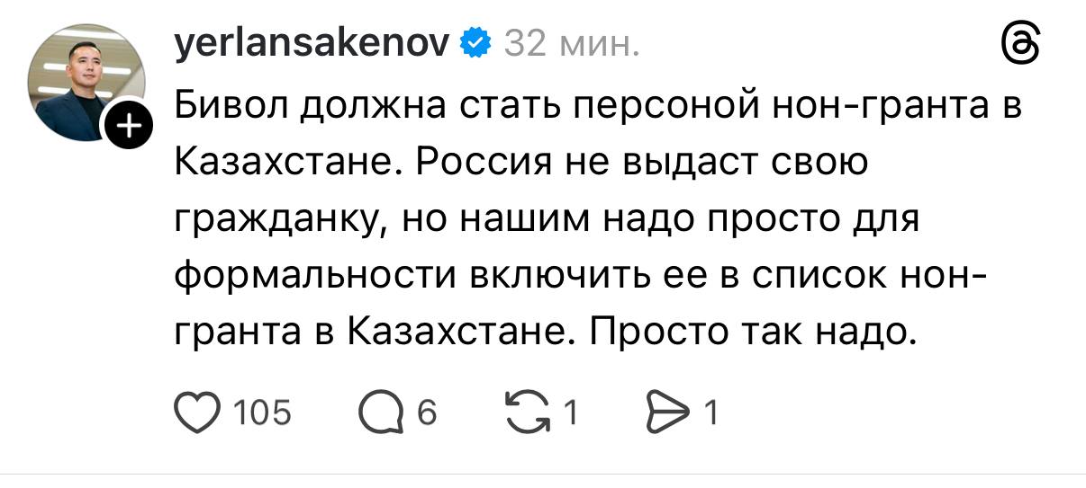 «Бивол должна стать персоной нон грата в Казахстане. Россия не выдаст, но формально включить в список надо», — отмечают другие.